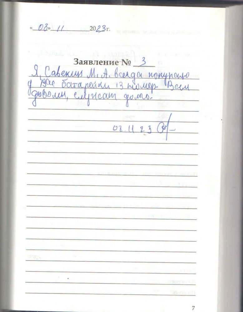 Я, Савекин М,А, всегда покупаю у Вас батарейки 13 номер. Всем доволен ,служат долго.