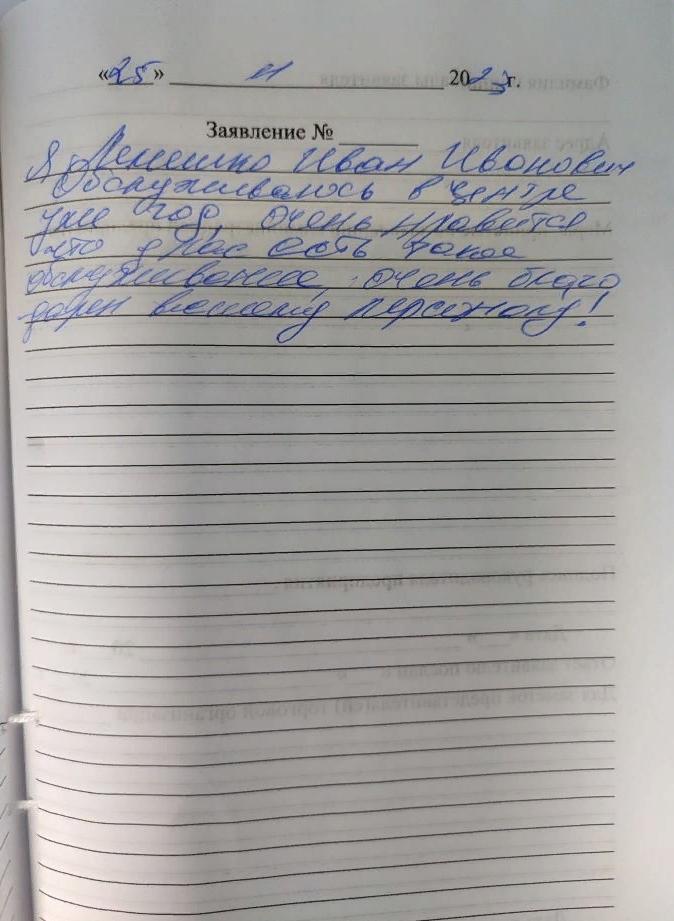 Обслуживаюсь в центре уже год, очень нравиться что у нас есть такое обслуживание, очень благодарен вашему персоналу.