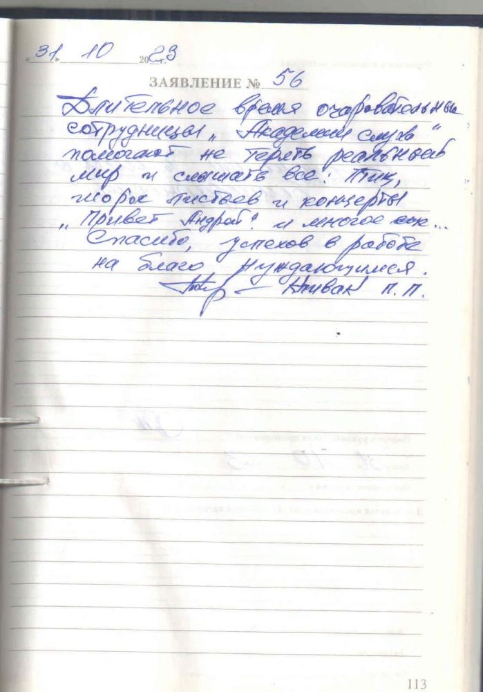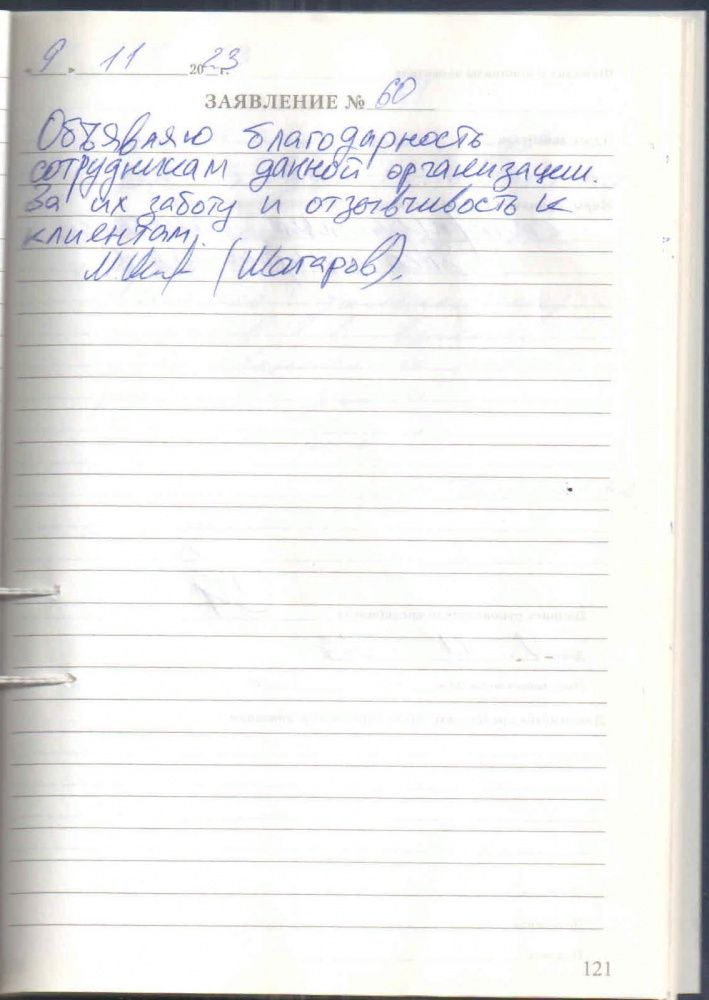 Объявляю благодарность сотрудникам данной организации за их заботу и отзывчивость к клиентам.