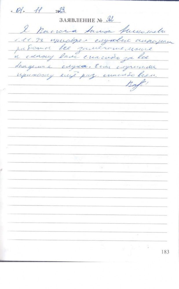 Я Васюта антон Николаевич 1.11.23 приобрел слуховой аппаратработы все замечательные и скажу вам спасибо за все Академия слуха. Если случиться прихожу ещё раз. спасибо всем.