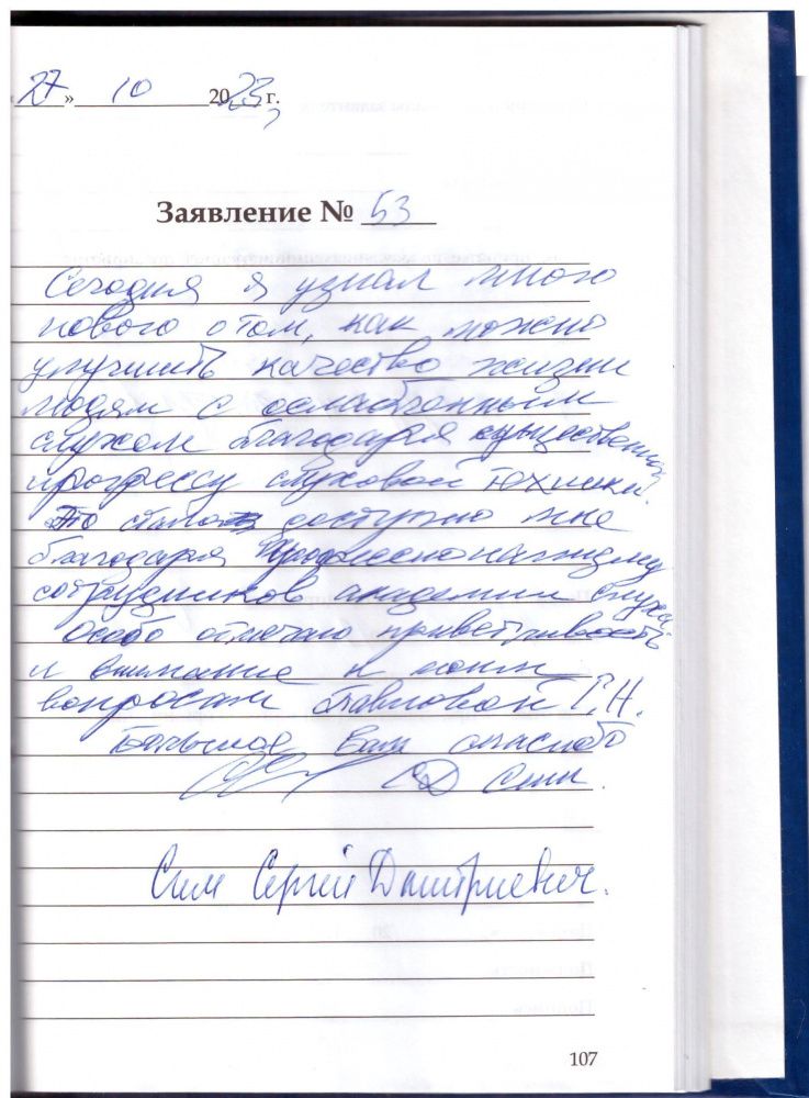Сегодня я узнал много нового о том, как можно улучшить качество жизни людям с ослабленным слухом благодаря существенному прогрессу слуховой техники. Это было доступно мне благодаря профессионализму сотрудников «Академии Слуха». Особо отмечаю приветливость и внимание к моим вопросам Павловой Г.Н.