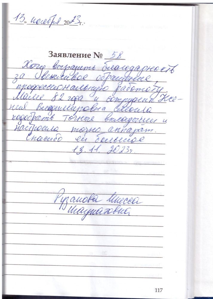 Я, мама Хасаншина Данила Радиковича 28.10.23г. приобрели слуховой аппарат. Здесь работают отзывчивые, доброжелательные врачи, специалисты. Хотя не слышим уже 22 года сегодня узнала много нового. Спасибо большое. Здоровья всем. Радуйте нас, успокаивайте. Это нам необходимо. Всего доброго и Удачи. не болейте. Пусть все будут довольны.