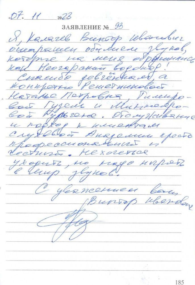 Я, Калачев Виктор Иванович ошарашен обилием звуков, которые на меня обрушились как Неогарский водопад! Спасибо девчёнкам, а конкретно Решетниковой Наталье Петровне, Тимировой Гузель и Миннеяровой Гульгене. Обслуживание и подход к клиентам слуховой Академиипросто профессиональный и честный. Не хочется уходить, но надо нырять в мир звуков.