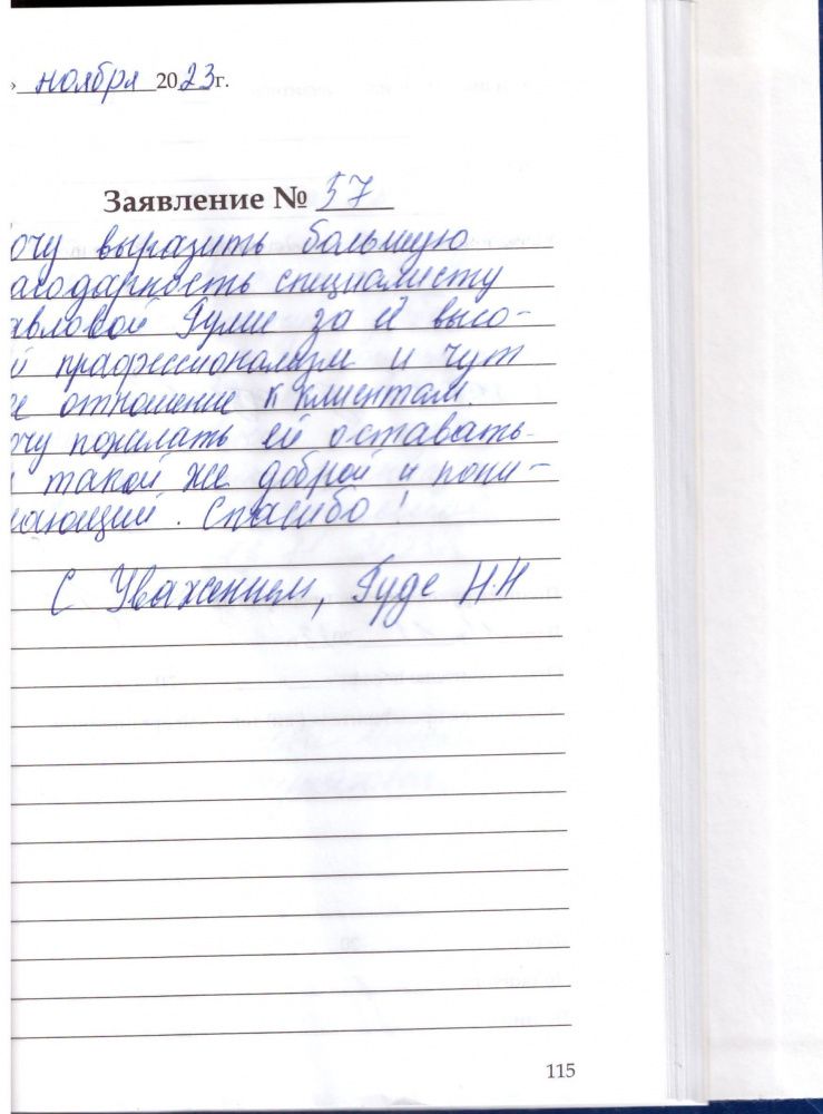 Хочу выразить большую благодарность специалисту Павлово Гулие за ее высокий профессионализм и чуткое отношение к клиентам. Хочу пожелать ей оставаться такой же доброй и понимающей. Спасибо!