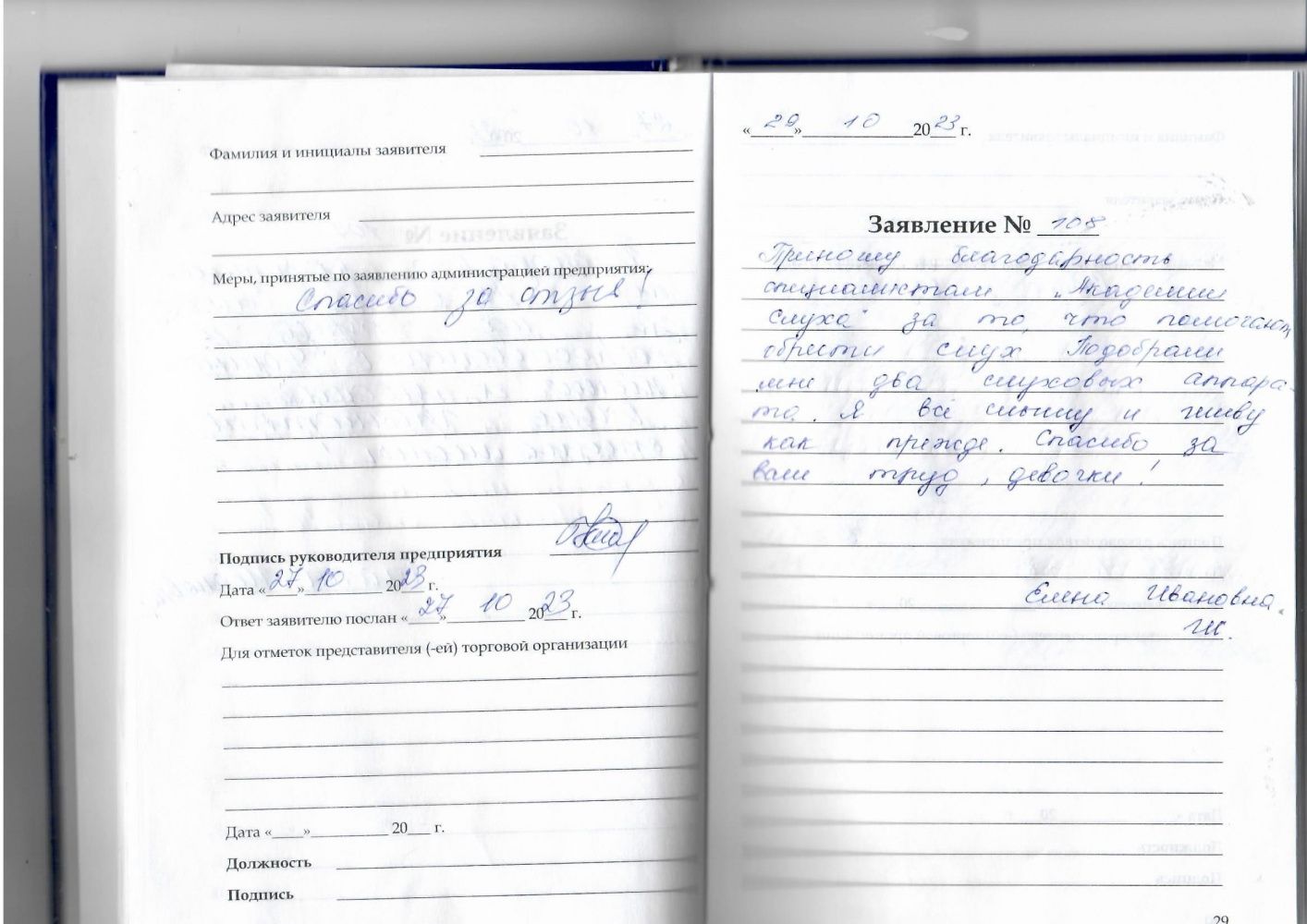 Приношу благодарность специалистам «Академии Слуха» за то, что помогают обрести слух. Подобрали мне два слуховых аппарата. Я всё слышу и живу как прежде. Спасибо за ваш труд, девочки!