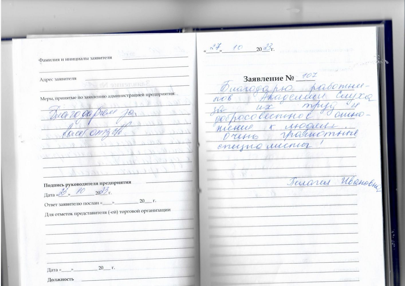 Выражаю благодарность всем сотрудникам центра «Академии Слуха» за оказанную мне услугу в выборе слухового аппарата. Слышу теперь отлично, речь разбираю, начинаю новую жизнь!