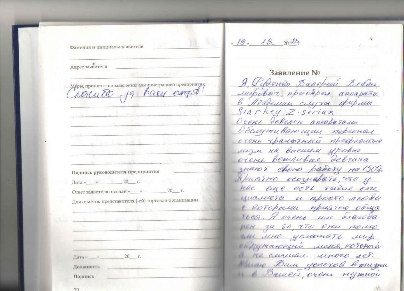Я, Руденко Валерий Владимирович, приобрел аппараты в Академии слуха фирмы Starkey Z-serias. Очень доволен аппаратами. обслуживающий персонал очень грамотный, профессионализм на высшем уровне, очень вежливые девчата, знают свою работу на 150%. Приятно осознавать, что у нас есть еще такие специалисты и просто люди с которыми приятно общаться. Я очень им благодарен за то, что они помогли мне услышать мир окружающий меня, который я не слышал много лет. Желаю Вам успехов в жизни и в вашей очень нужной людям работе. С наступающим Вас Новым годом девчонки! С глубоким уважением Руденко Валерий Владимирович.