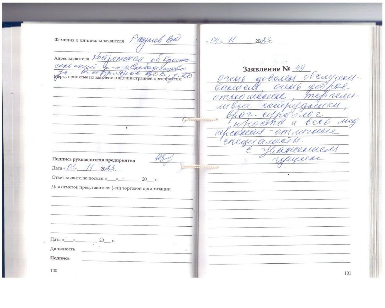 Я, пациент Сорокин Виктор Николаевич, выражаю свою благодарность за поправку состояния установки индивидуального вкладыша правого уха.