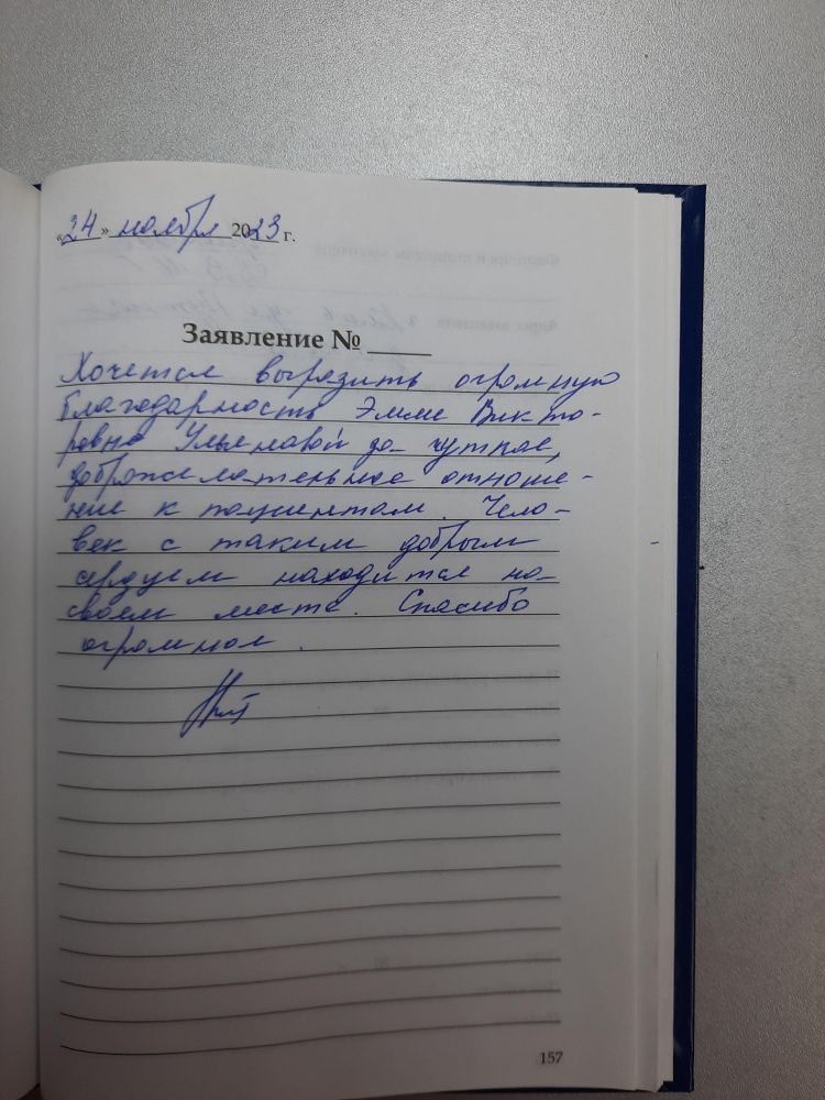 Хочется выразить огромную благодарность Эмме Викторовне Ульяновой за чуткое, доброжелательное отношение к пациентам. Человек с таким добрым сердцем находится на своем месте. Спасибо огромное
