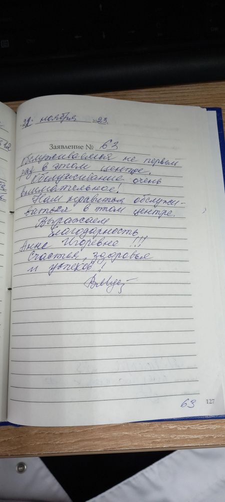 Обслуживаемся не первый раз в этом центре.Обслуживание очень внимательное! нам нравься обслуживаться в этом центре.Выражаем благодарность Анне Игоревне! Счастья, здоровья и успехов!