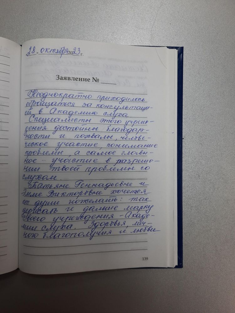 Выражаю огромную благодарность сотрудникам "Академии слуха" за очень обходительное и замечательное отношение инвалидам слуха.