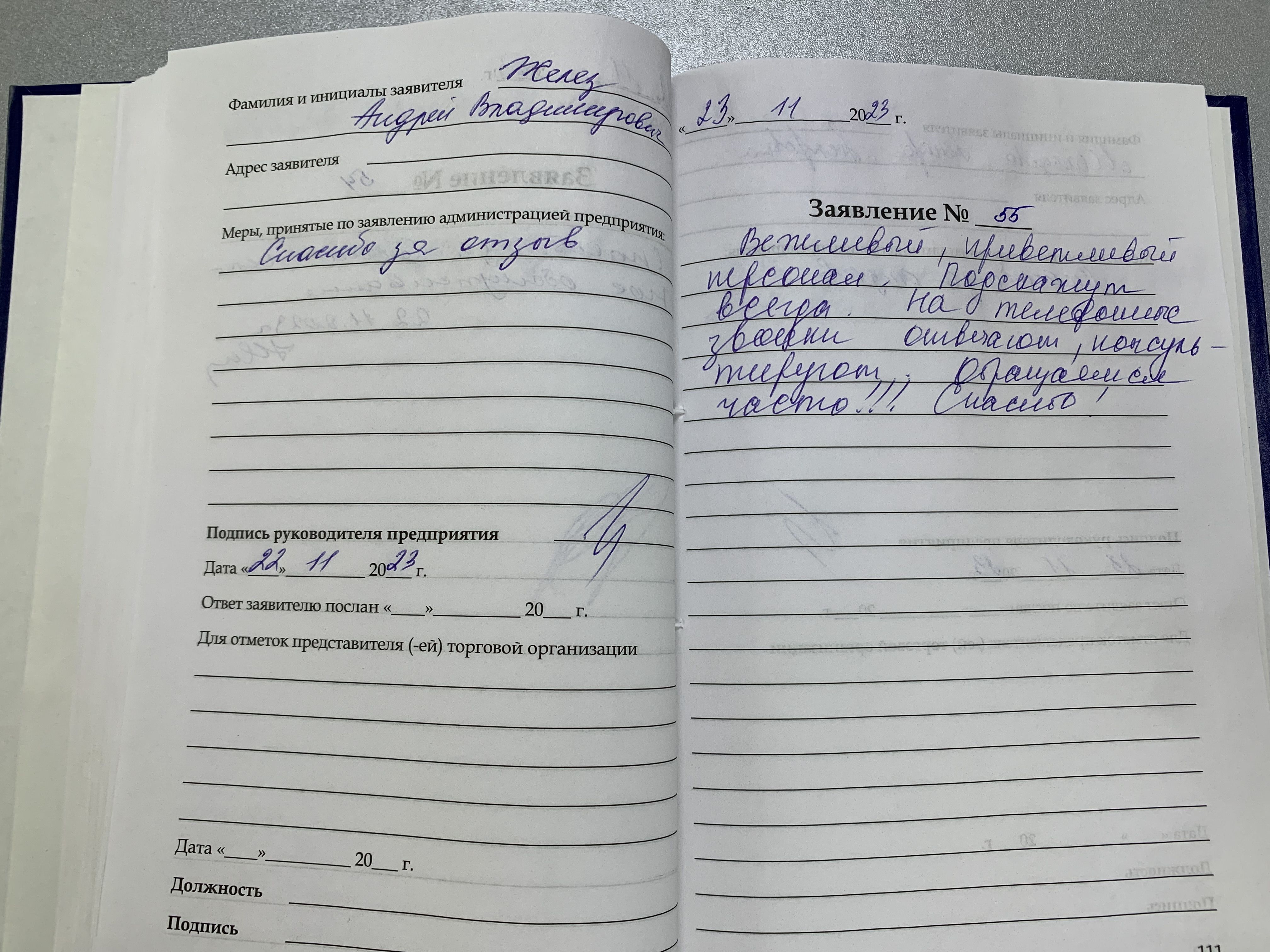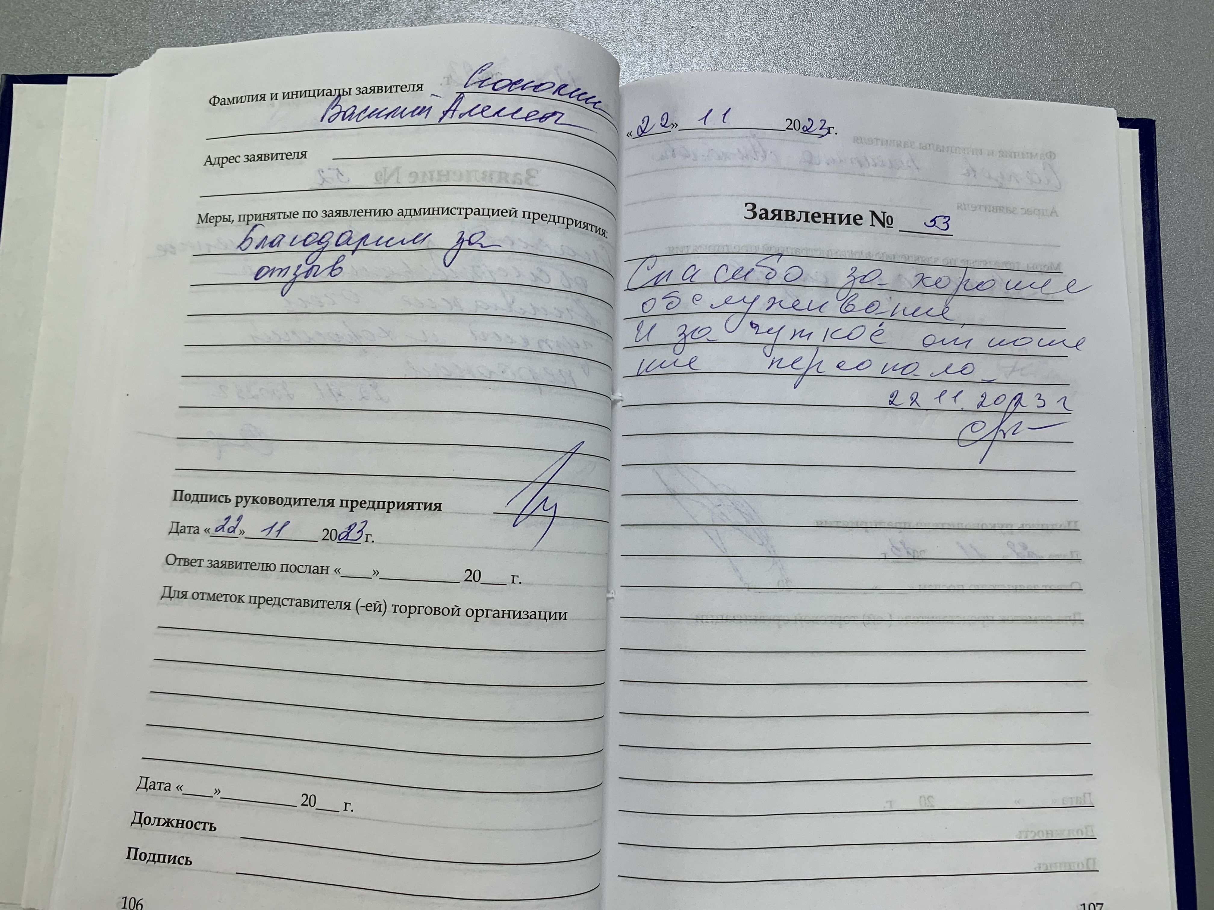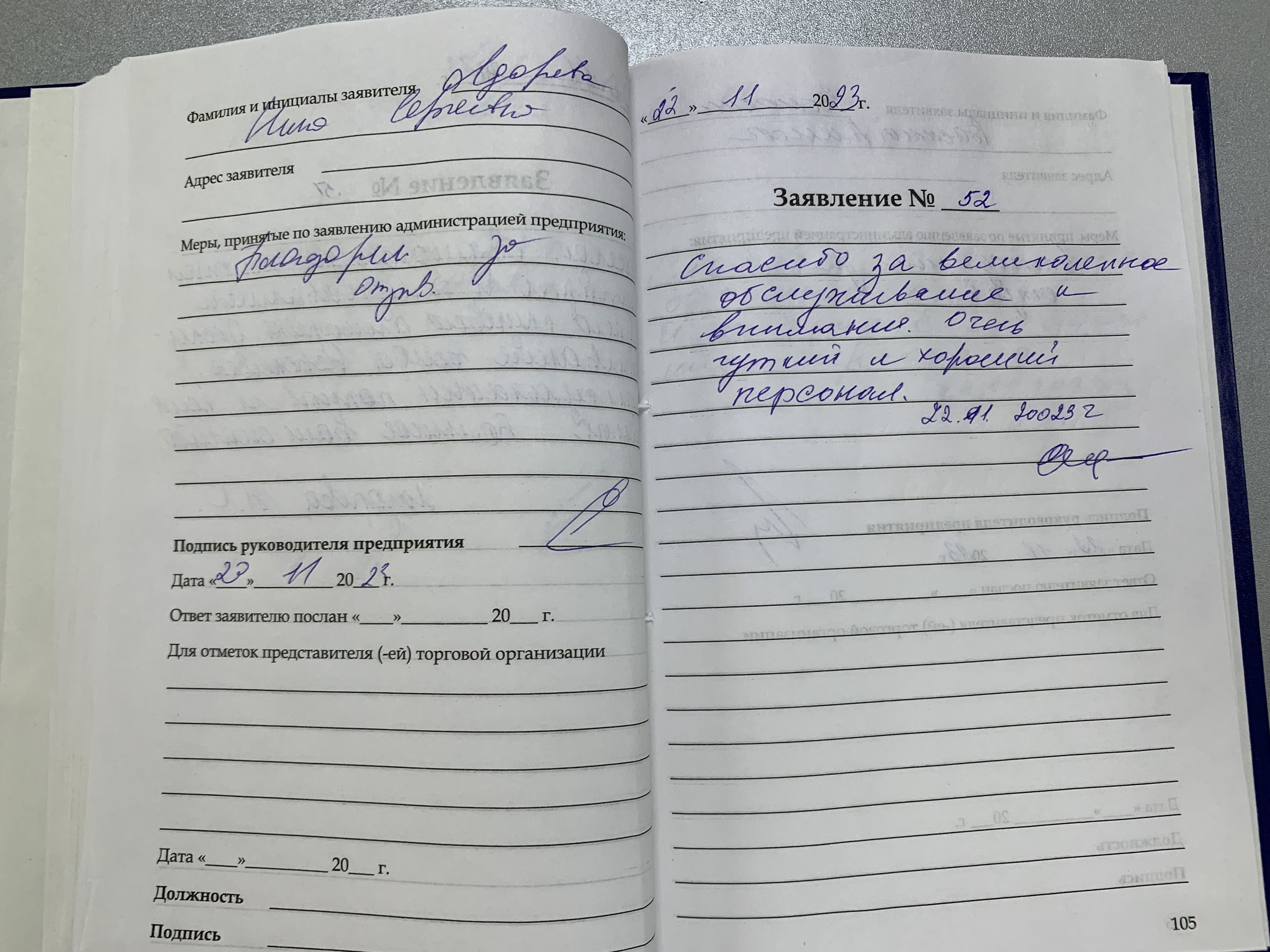 Спасибо за хорошее обслуживание. И за чуткое отношение персонала.