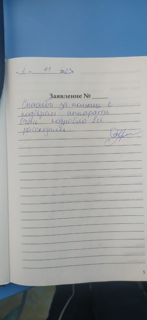 Спасибо за помощь с подбором аппарата. Очень подробно всё рассказали.