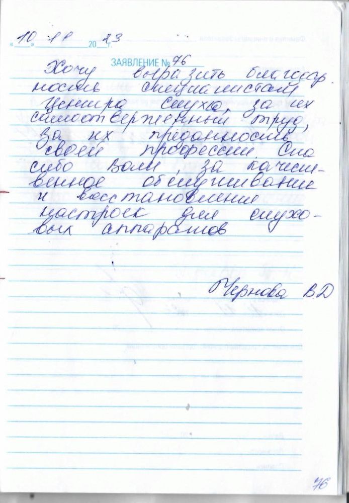 Всей семьей выражаем благодарность Фроловой Светлане за подбор и настройку слухового аппарата моему отцу