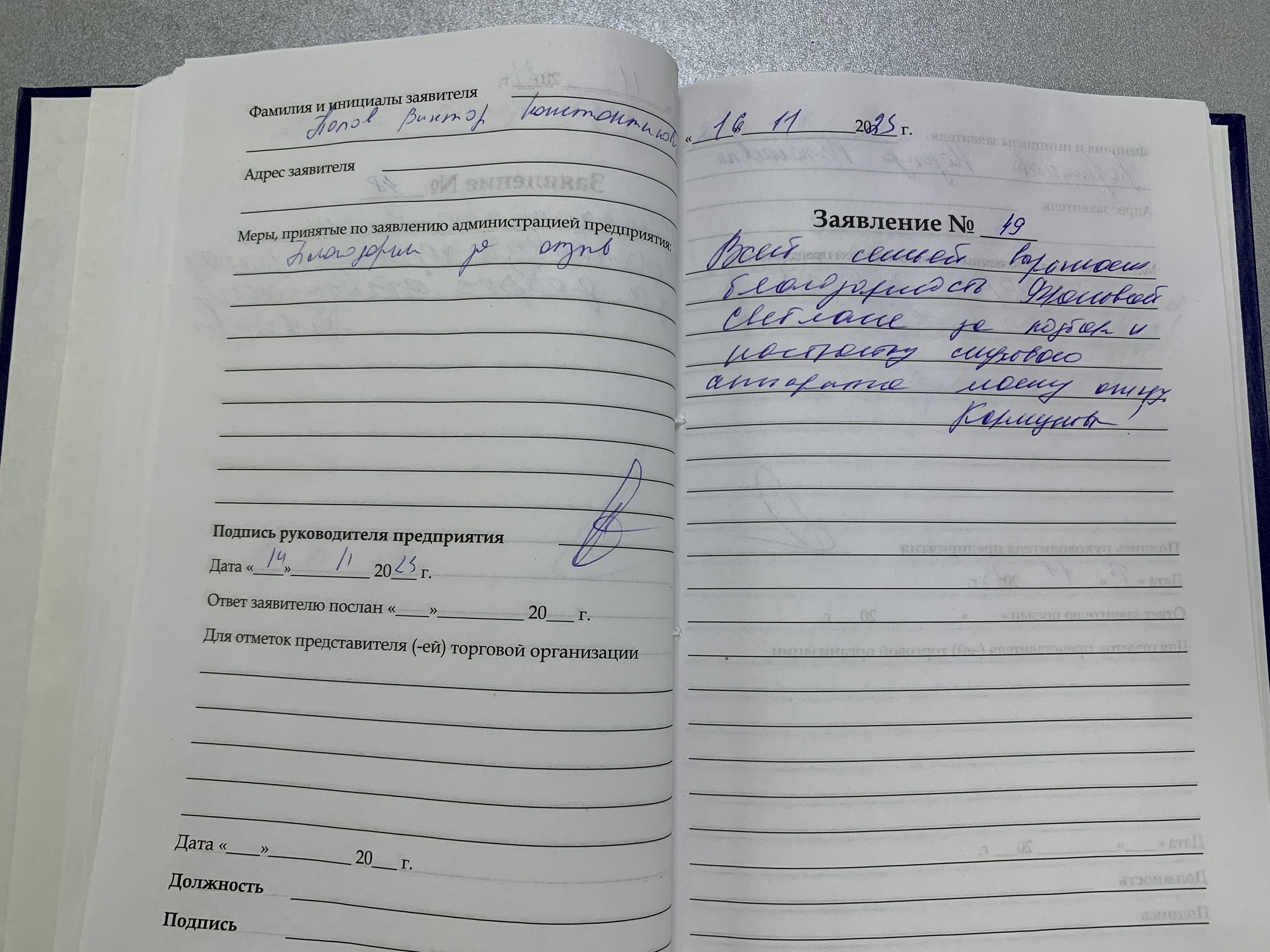 ЗАЯВЛЕНИЕ № 79