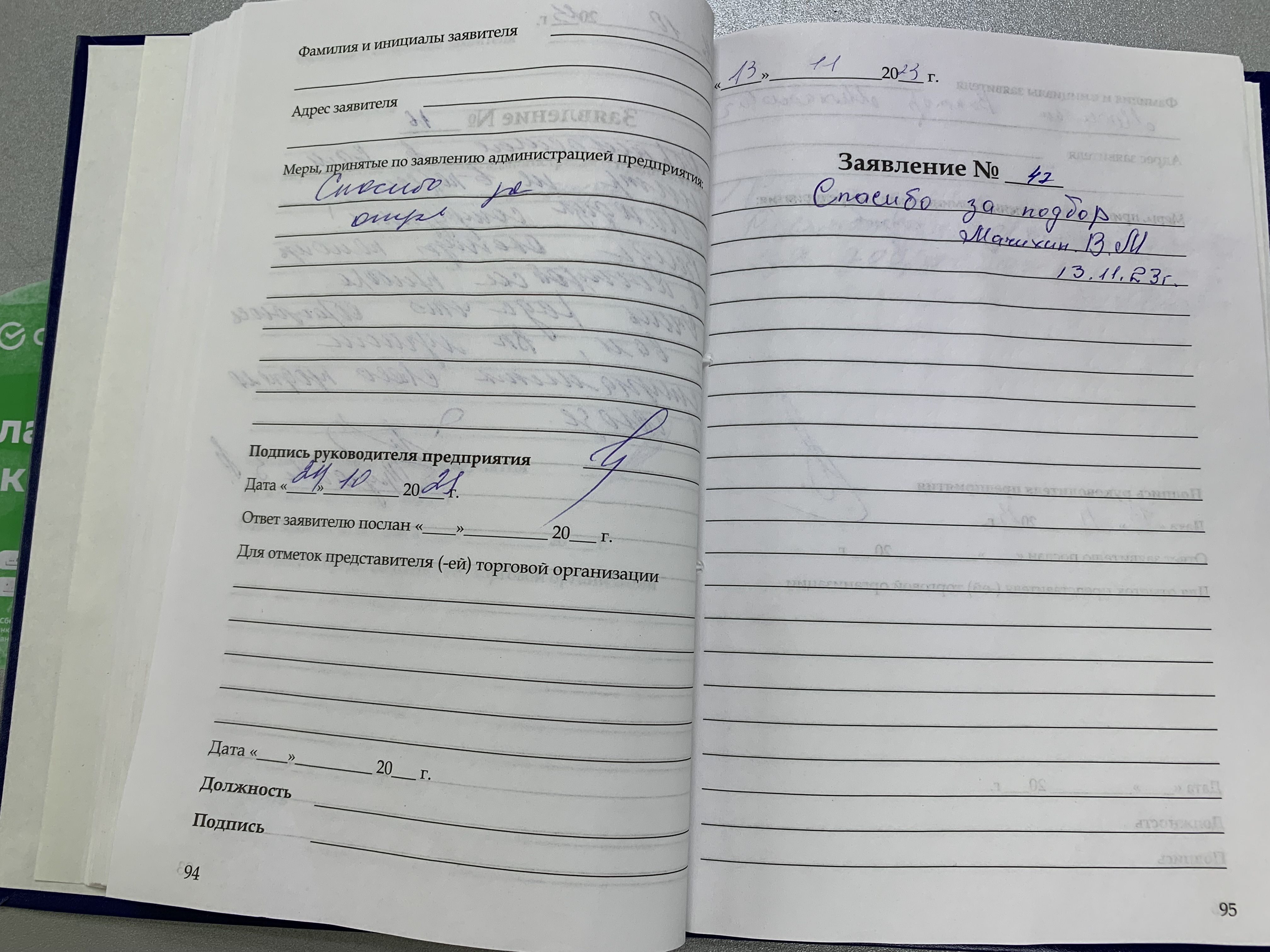 ЗАЯВЛЕНИЕ № 78
