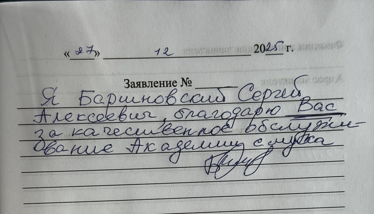 Я, Бартновский Сергей Алексеевич, благодарю Вас за качественное обслуживание Академии слуха.