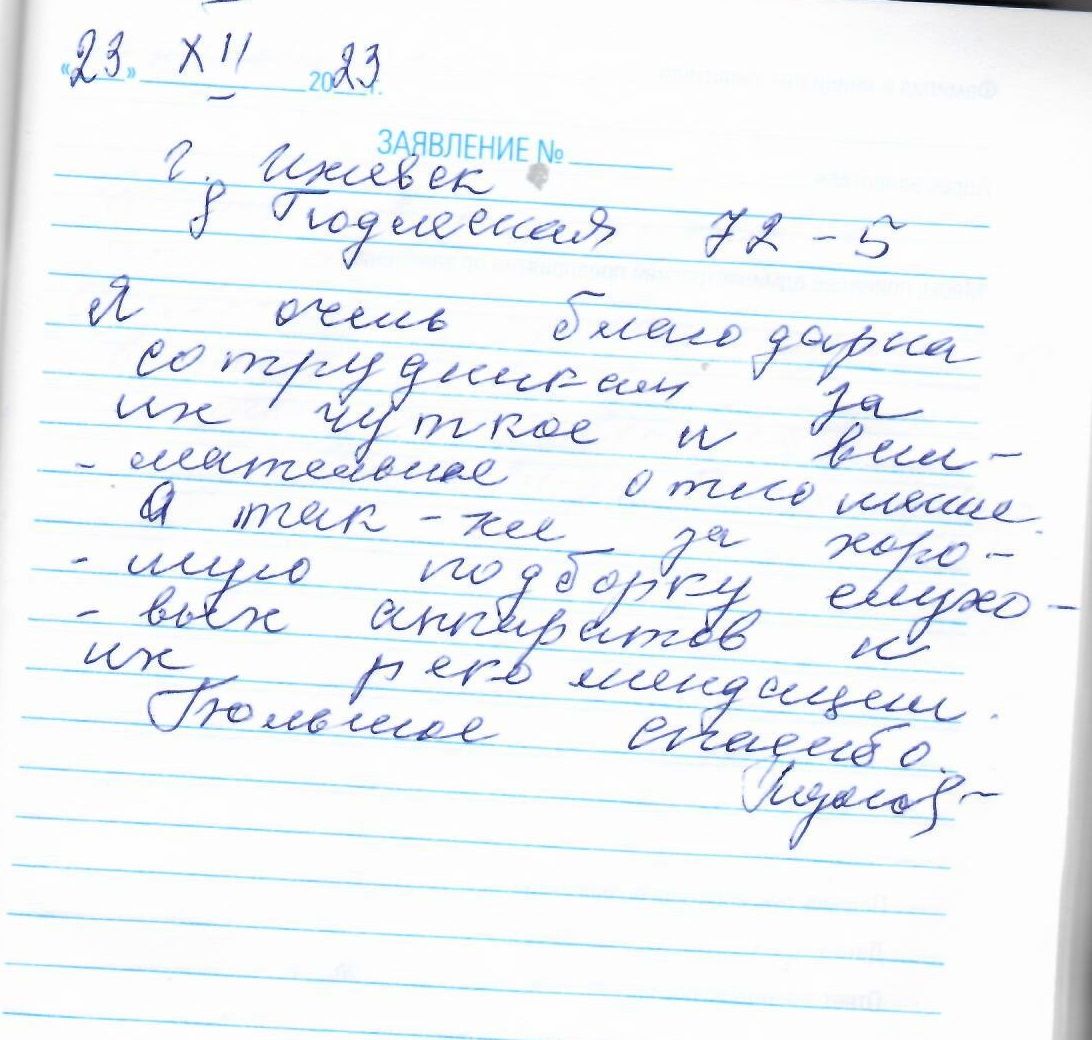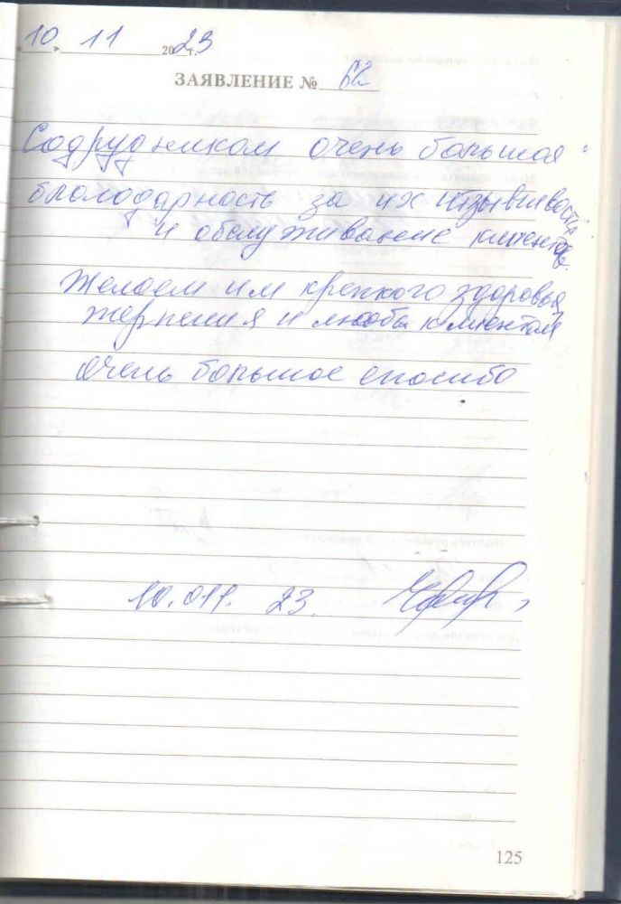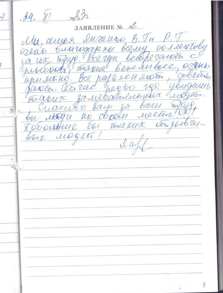 Мы, семья Янченко В.Г. и Р.Т. очень благодарны всему коллективу за их труд. Всегда встречают с улыбкой, такие вежливые, очень приятно. Все разъясняют, советы дают.Сейчас редко где увидишь таких замечательных людей. Спасибо вам за ваш труд, вы люди на своем месте!!! Побольше бы таких отзывчивых людей!