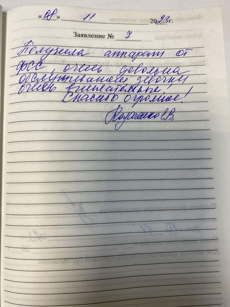 Получила аппарат от ФСС, очень довольна обслуживанием, девочки очень внимательные! Спасибо огромное!