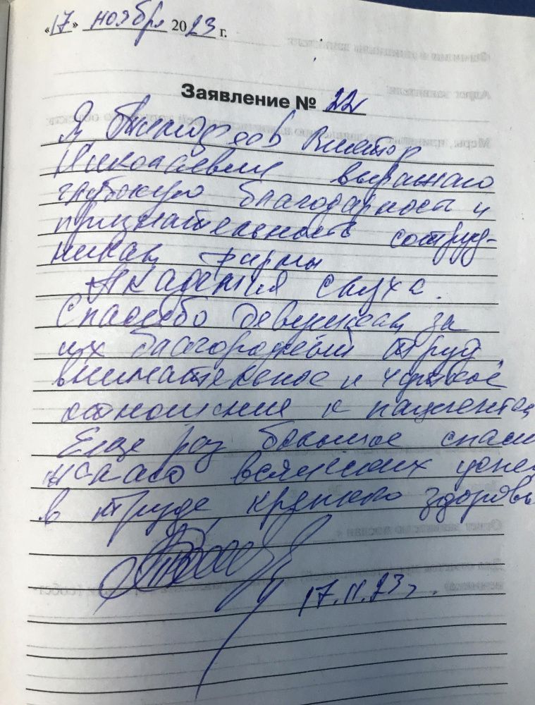 Еще раз большое спасибо, желаю всяческих успехов в труде, крепкого здоровья. Тимофеев В.Н. 17.11.2023