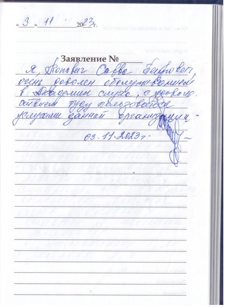 Я, Попович Савва Петрович, очень доволен обслуживанием в академии слуха, с удовольствием буду пользоваться услугами данной организации
