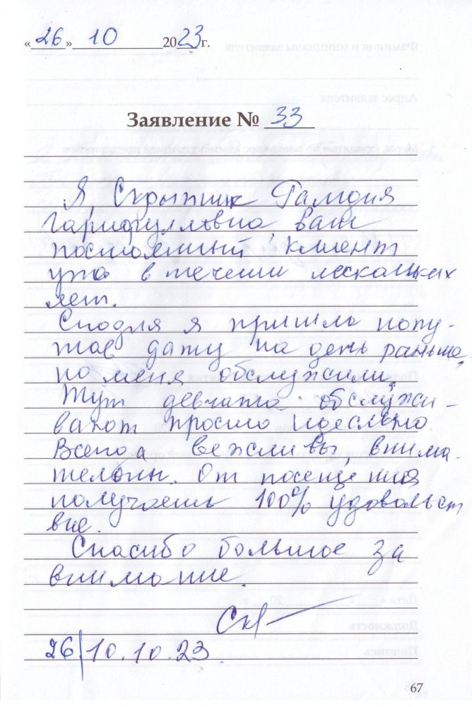 Я, Скрыпник Рамдия Гарифулловна, ваш постоянный клиент уже в течении нескольких лет.