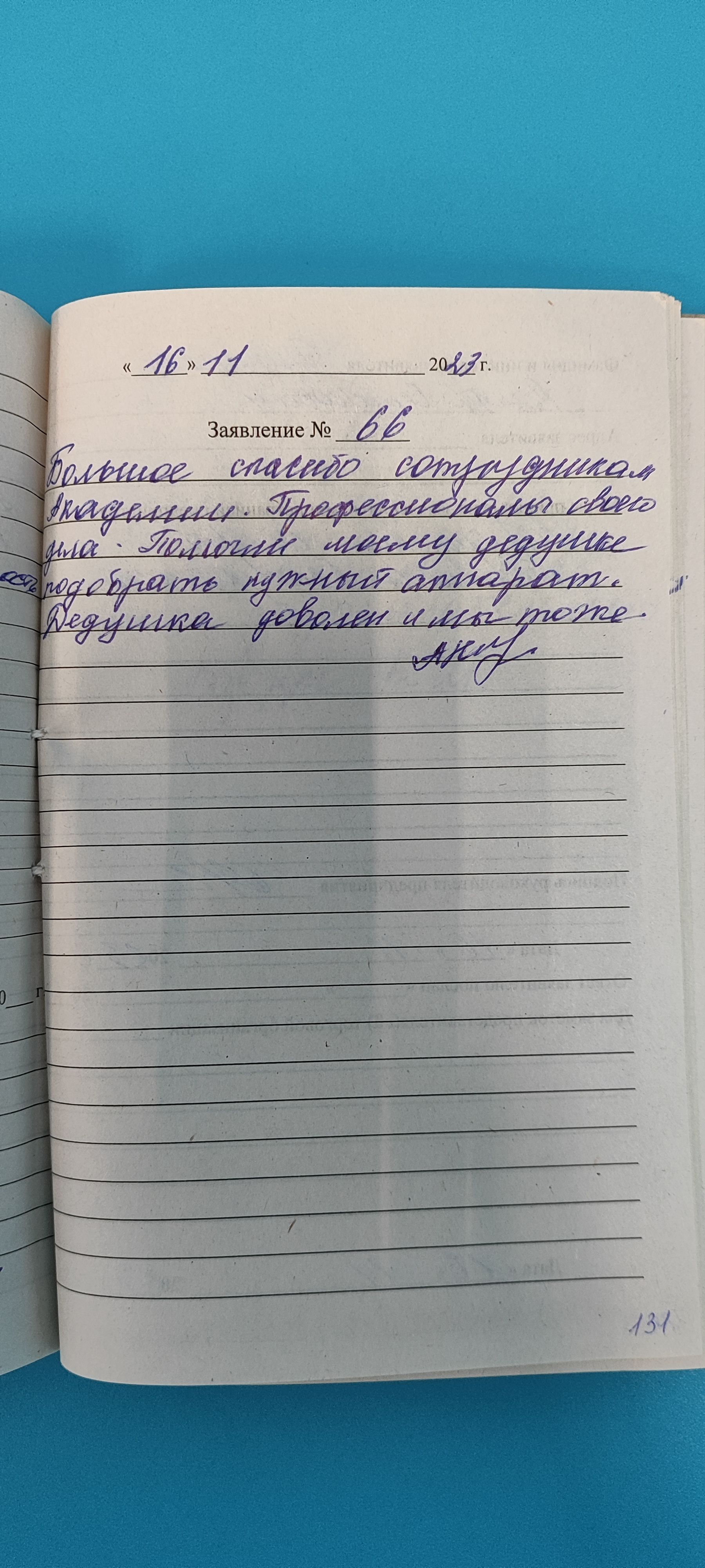 Большое спасибо сотрудникам Академии. Профессионалы своего дела. Помогли моему дедушке подобрать нужный аппарат . Дедушка доволен и мы тоже.