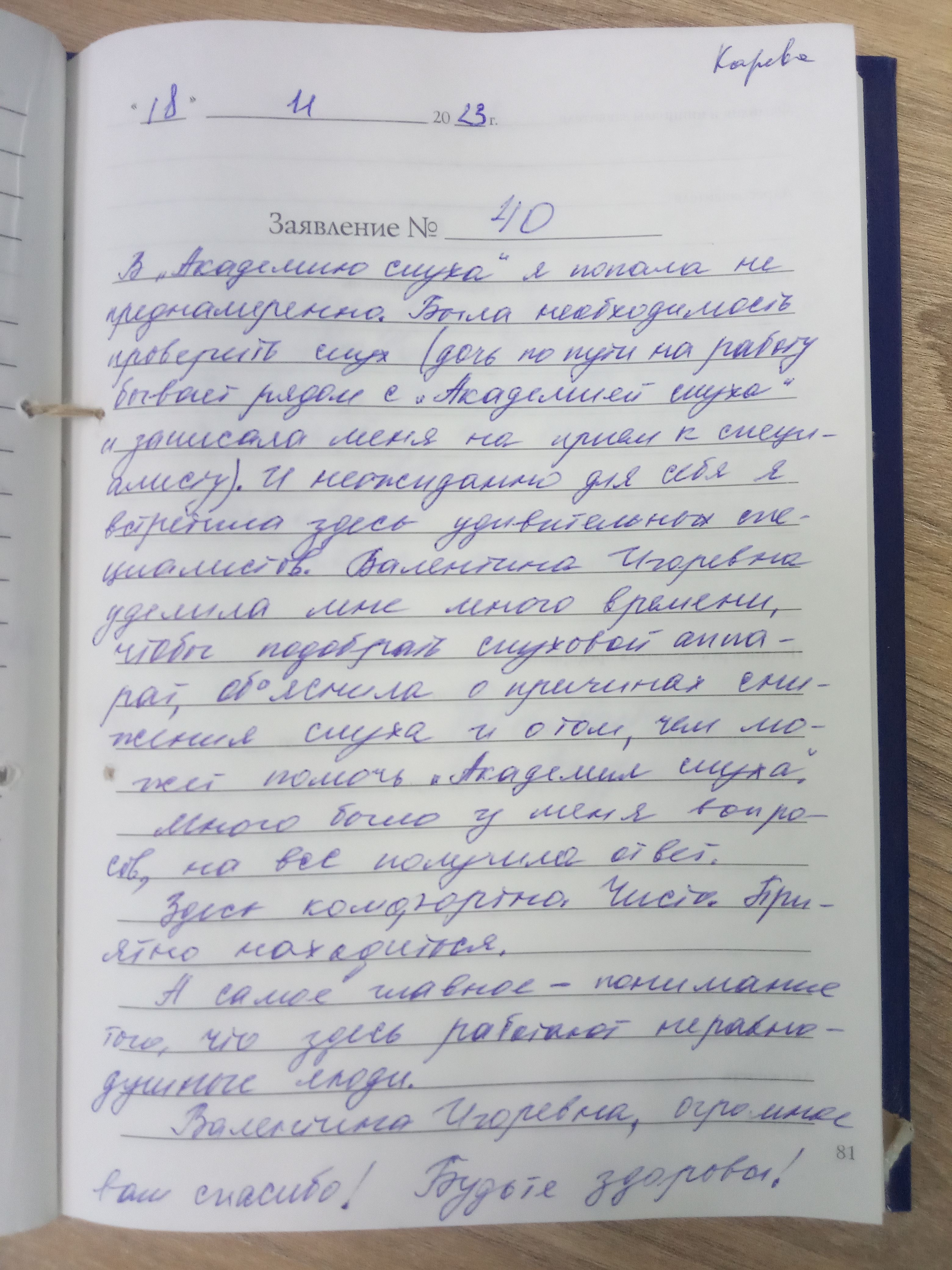 В Академию слуха я попала непреднамеренно. Была необходимость проверить слух (дочь по пути на работу бывает рядом с Академией слуха и записала меня на прием к специалисту).