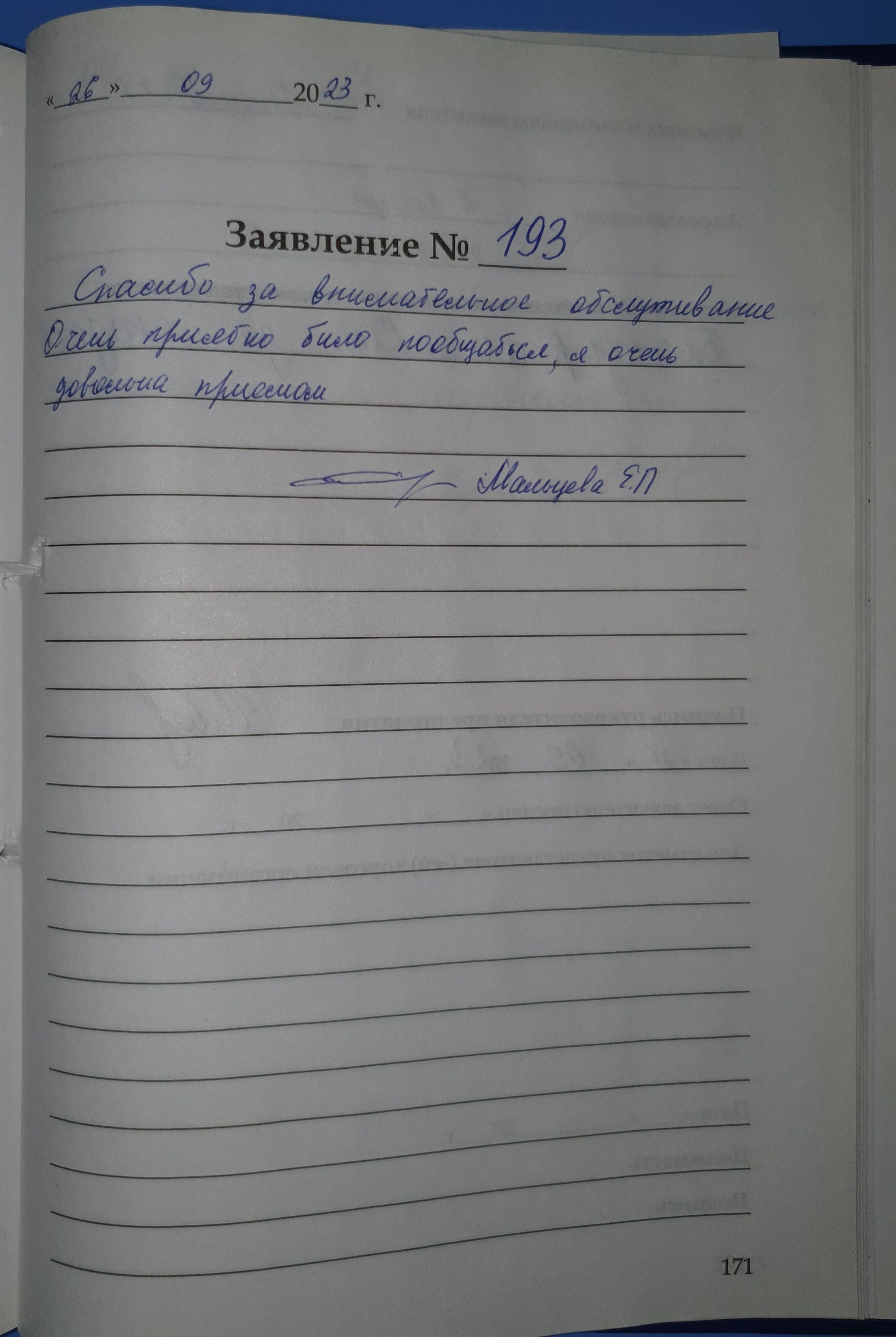 Спасибо за внимательное обслуживание. Очень приятно было пообщаться, я очень довольна приемом. Мальцева Е.П., г. Кирово-Чепецк