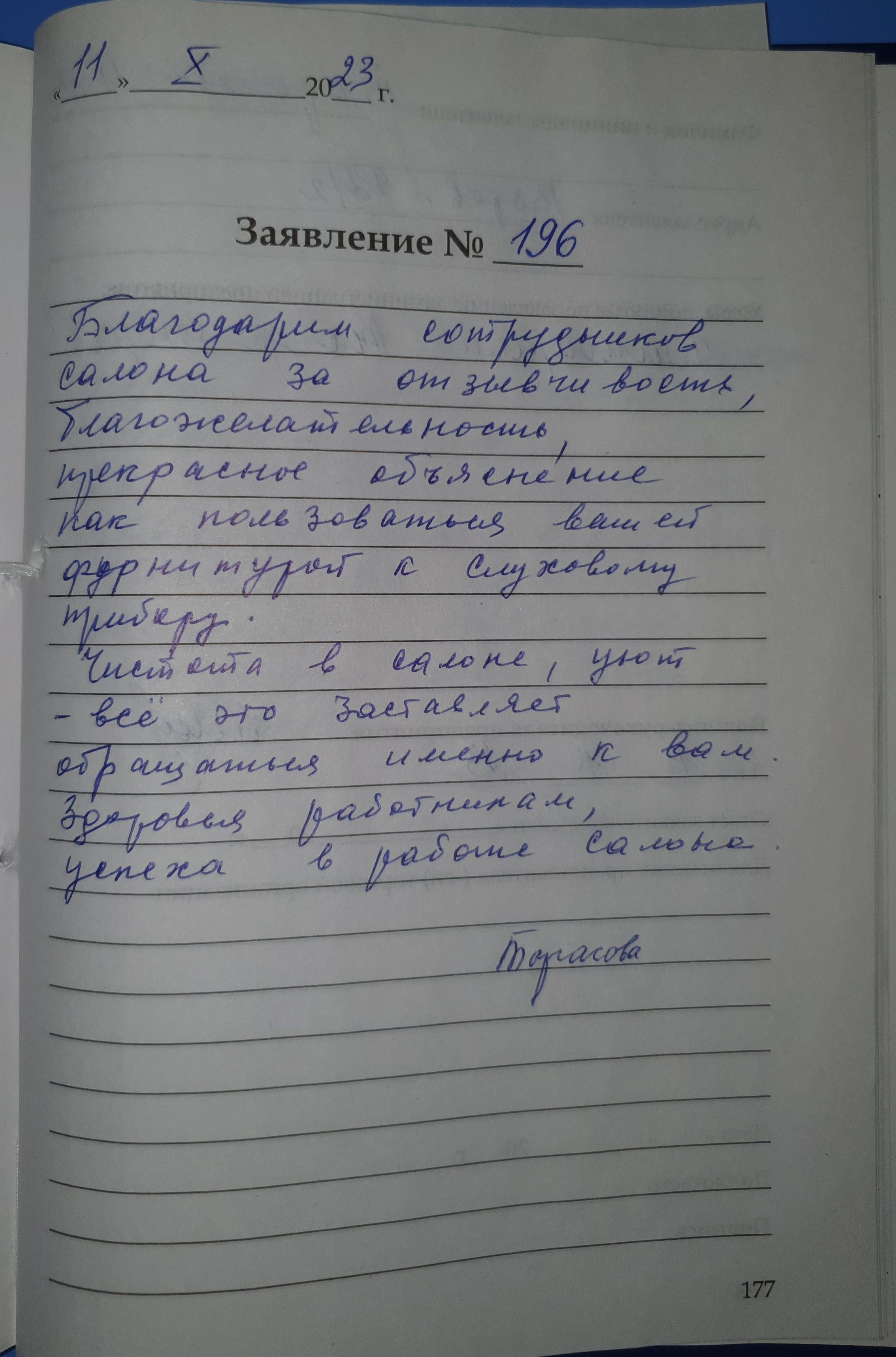 Благодарю сотрудников салона за отзывчивость, благожелательность, прекрасное объяснение как пользоваться вашей фурнитурой к слуховому прибору. Чистота в салоне, уют - все это заставляет обращаться именно к вам, Здоровья работникам, успеха в работе салона. Тарасова Н.А., г. Киров