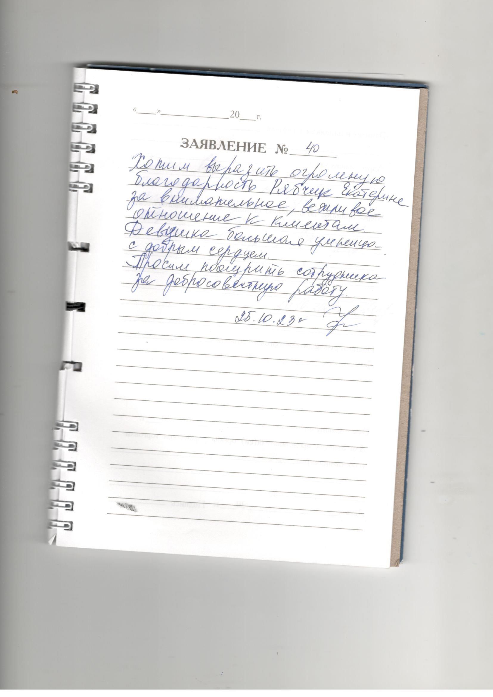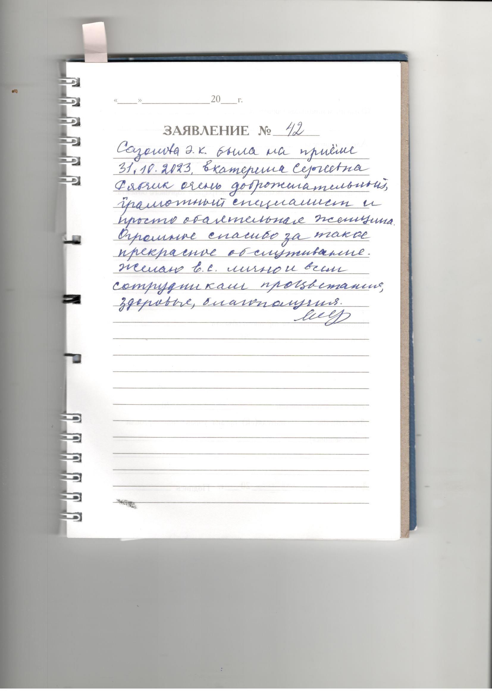 Сазонова Э.К была на приеме 31.10.2023. Екатерина Сергеевна Рябчик очень доброжелательный, грамотный специалист и просто обаятельная женщина. Огромное спасибо за такое прекрасное обслуживание. Желаю Е.С лично и всем сотрудникам процветания, здоровья, благополучия.