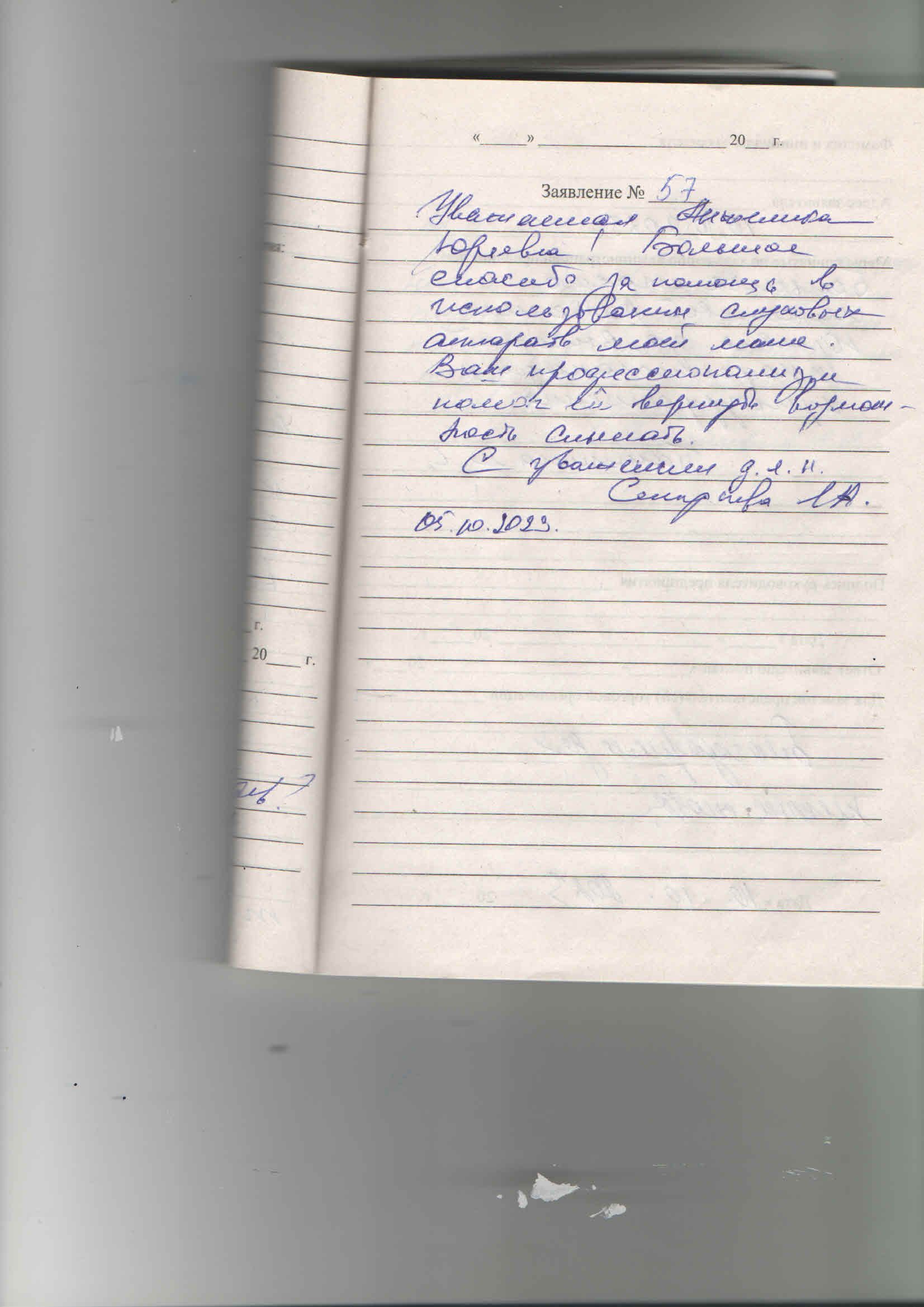 Уважаемая Анжелика Юрьевна! Большое спасибо за помощь в использовании слуховых аппаратов моей маме. Ваш профессионализм помог ей вернуть возможность слышать С уважением