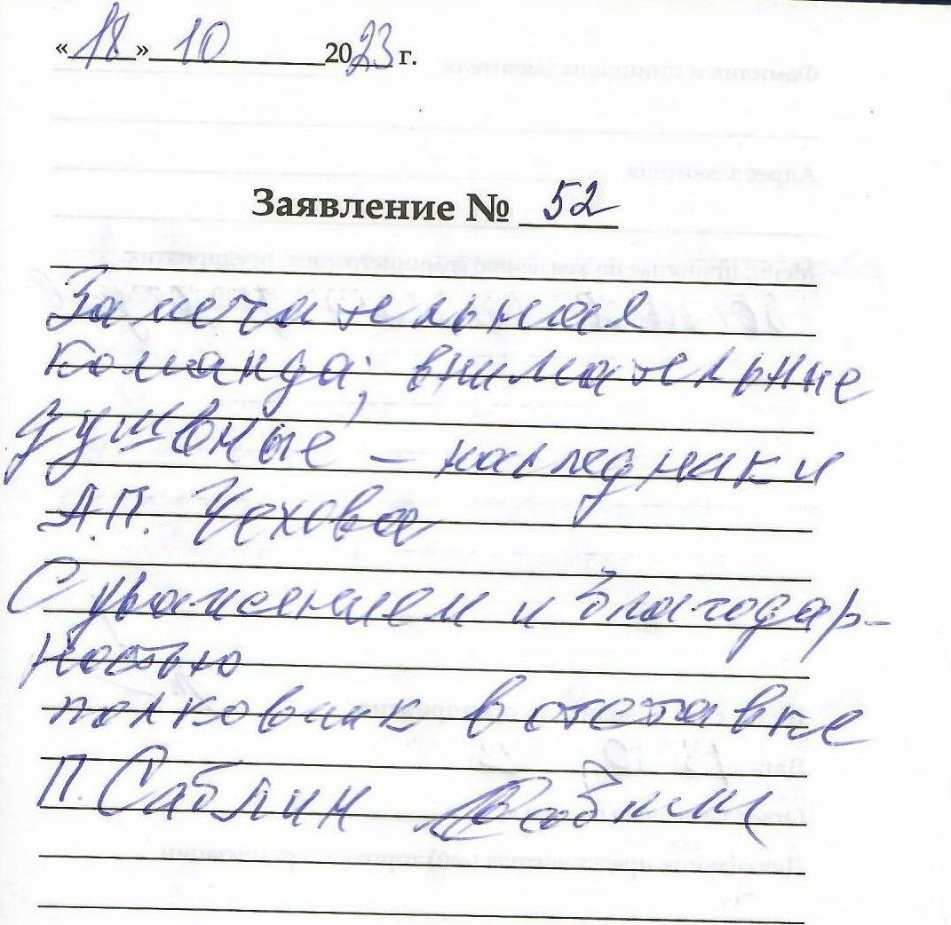 Замечательная команда, внимательные . душевные наследники А.П.Чехова. С удовольствием и благодарностью полковник в отставке П. Саблин