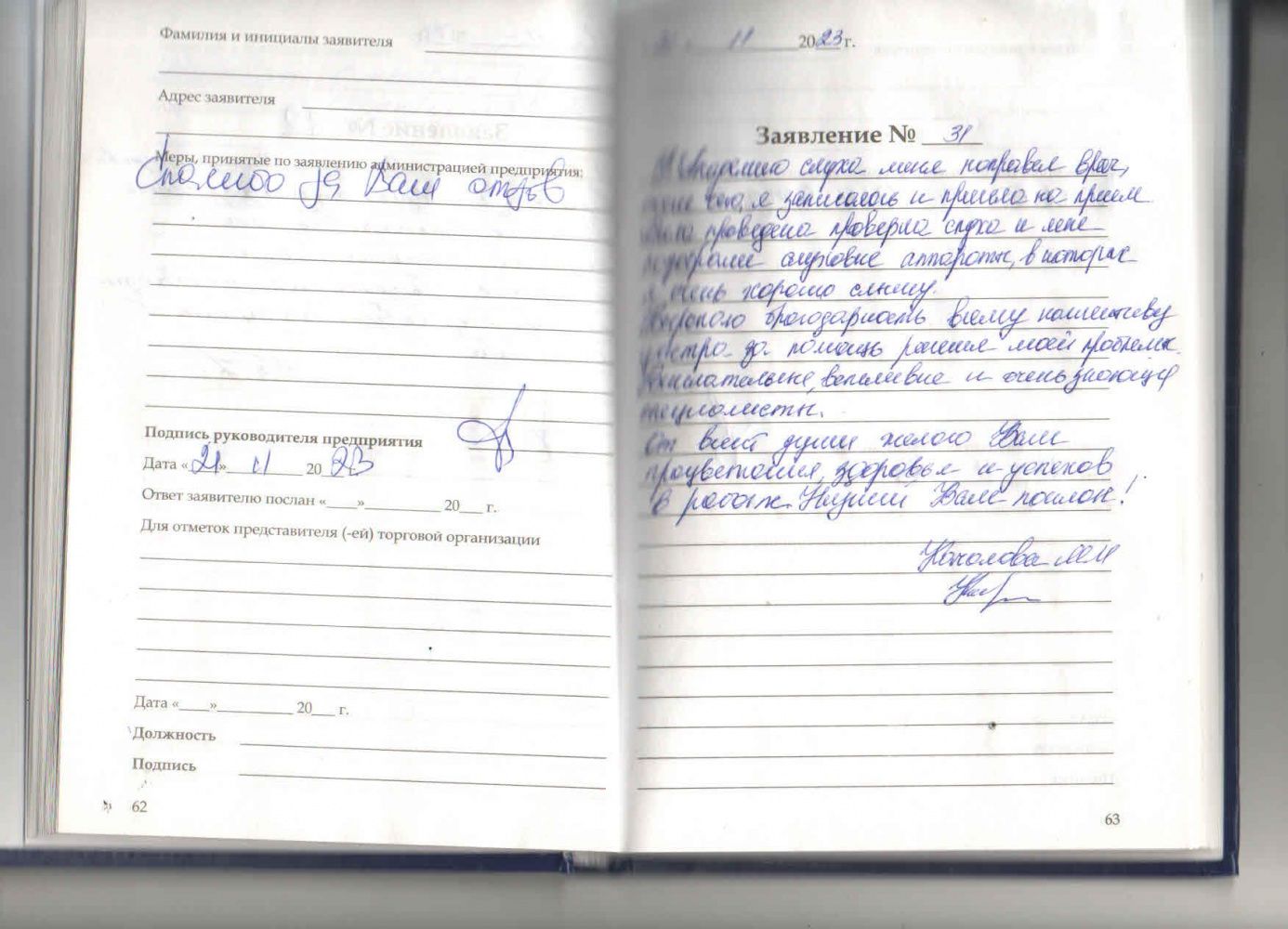 Благодарю за качественное обслуживание, за полное объяснение всех интересующих нас вопросов, за вежливое отношение с пациентами.
