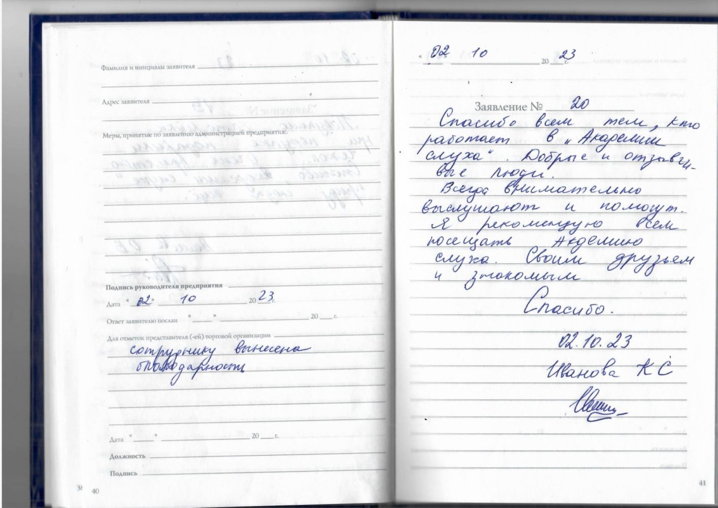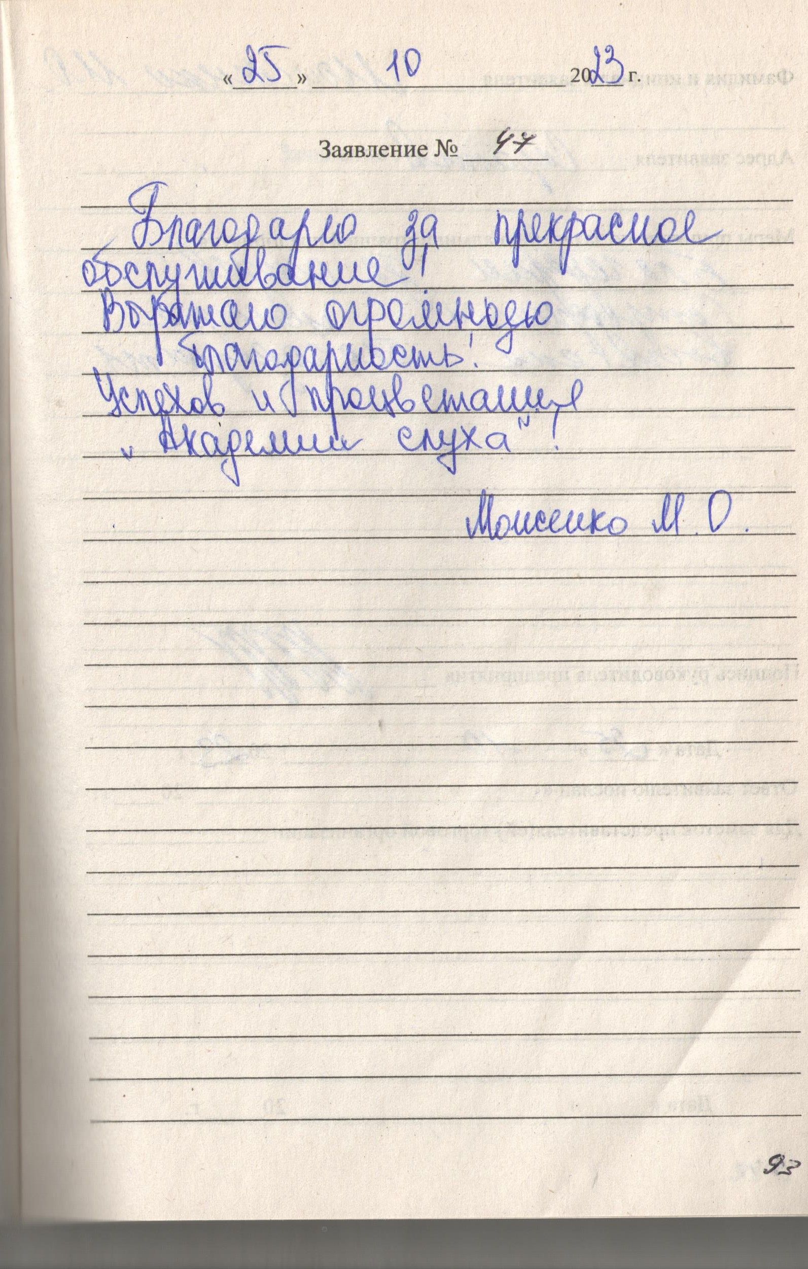 Благодарю за прекрасное обслуживание! Выражаю огромную благодарность! Успехов и процветания №Академии Слуха"