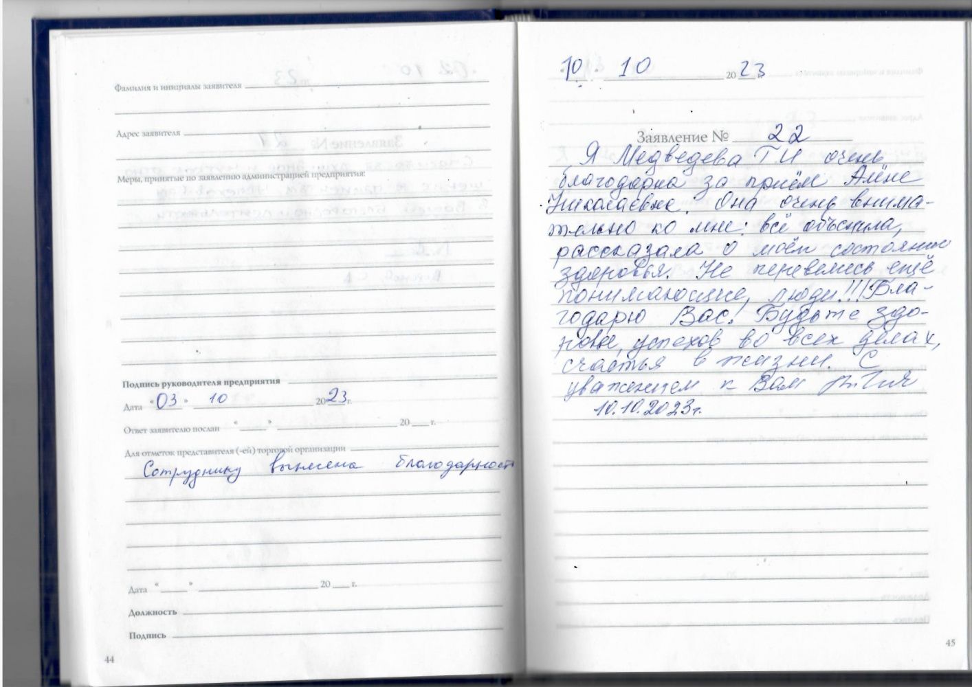 Я Медведева ГИ очень благодарнв за прием Алёне Николаевне. Она очень внимательно ко мне: всё объяснила, рассказала о моем состоянии здоровья. Не перевелись еще понимающие люди!!! Благодарю Вас! Будьте здоровы , успехов во всех делах, счастья в жизни . С уважением к Вам