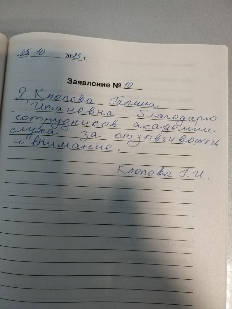 Я, Клопова Галина Ивановна благодарю сотрудников Академии слуха за отзывчивость и внимание.