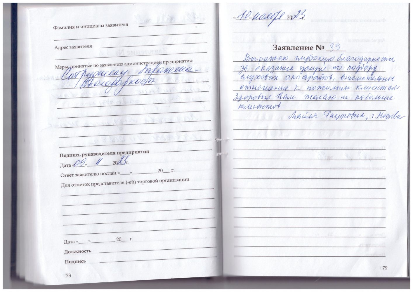 Большое спасибо за обслуживание для моих слуховых аппаратов. За внимательное отношение моего возраста.