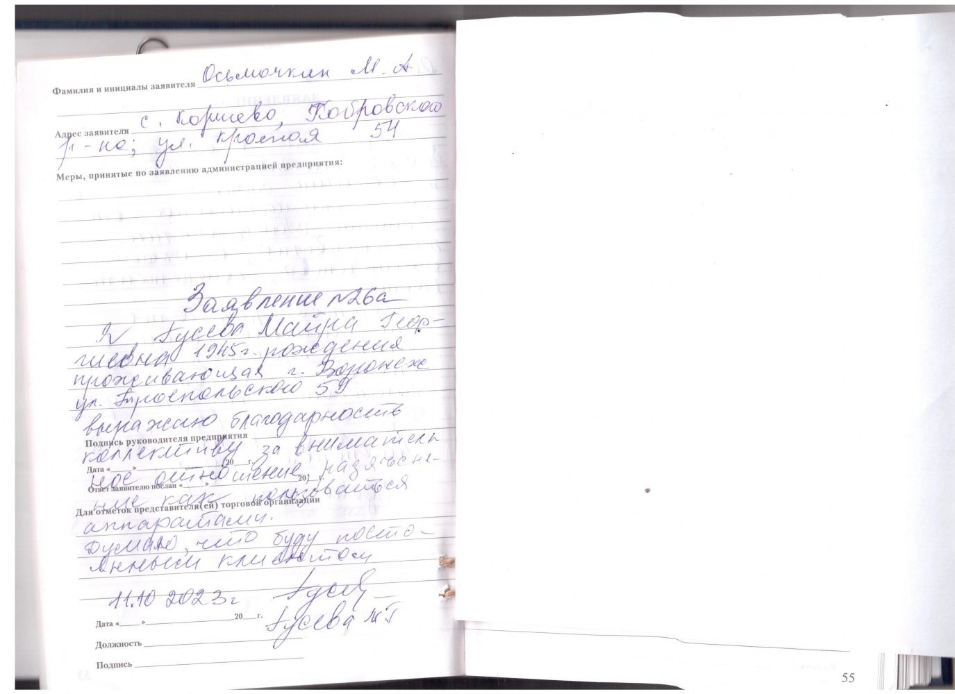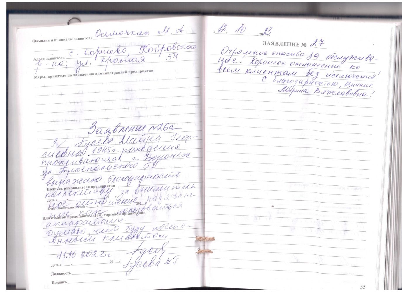 Я, Гусева Майра Георгиевна, 1945г. рождения, проживающая в г. Воронеже, выражаю благодарность коллективу за внимательное отношение, разъяснения, как пользоваться аппаратами. Думаю, что буду постоянным клиентом.