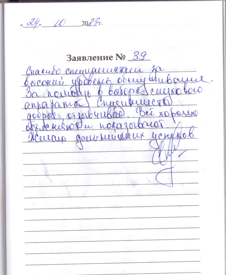 Спасибо специалистам за высокий уровень обслуживания.За помощь в выборе слухового аппарата. Специалисты добрые,отзывчивые.Все хорошо объясняют и показывают.Желаю дальнейших успехов.