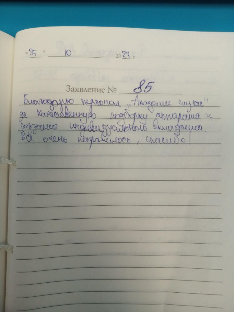 Благодарю персонал "Академии слуха" за качественную подборку аппарата и создание индивидуального вкладыша. Всё очень понравилось, спасибо!