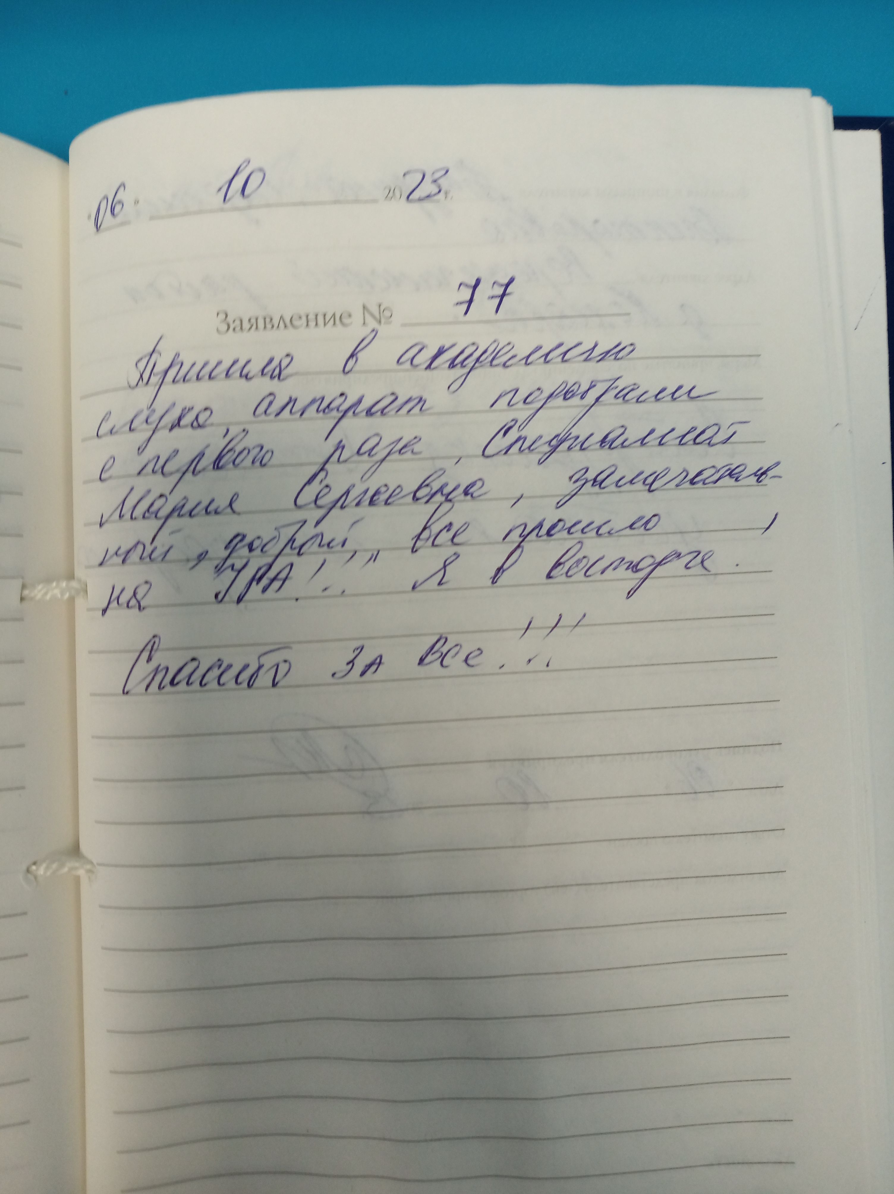 Душевное спасибо коллективу "Центра слухопротезирования" за доброе, понимающее отношение к пациентам, за терпение. Будьте здоровы!