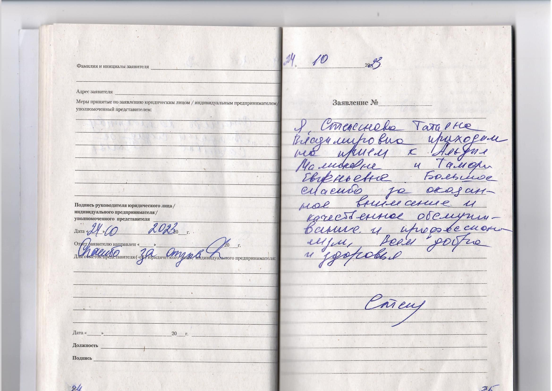 Я, Степанова Т.В приходила на прием к Альфие Маликовне и Тамаре Евгеньевне. Большое спасибо за оказанное внимание и качественное обслуживание и профессионализм. Всем добра и здоровья!