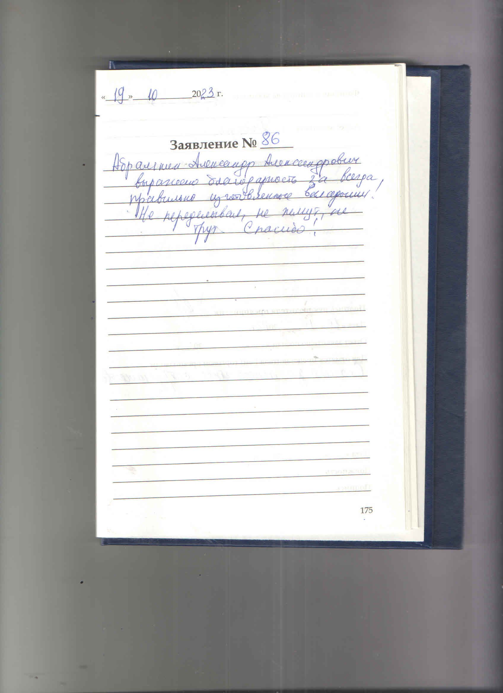 Абрамкин Александр Александрович выражаю благодарность за всегда правильно изготовленные вкладыши. Не переделывал, не жмут,не трут.