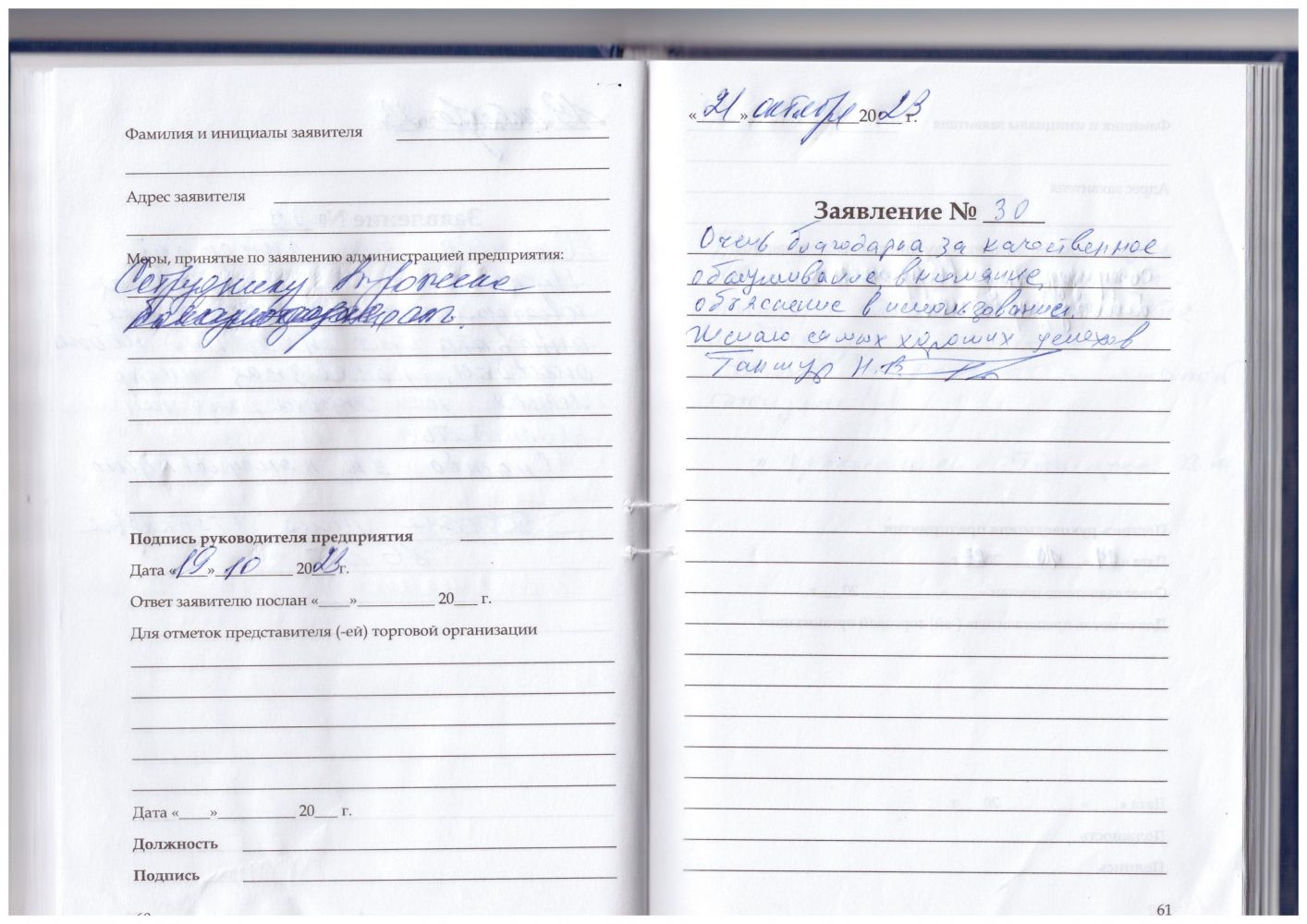 Очень благодарю за качественное обслуживание, внимание, объяснение в использовании СА. Желаю самых хороших успехов.