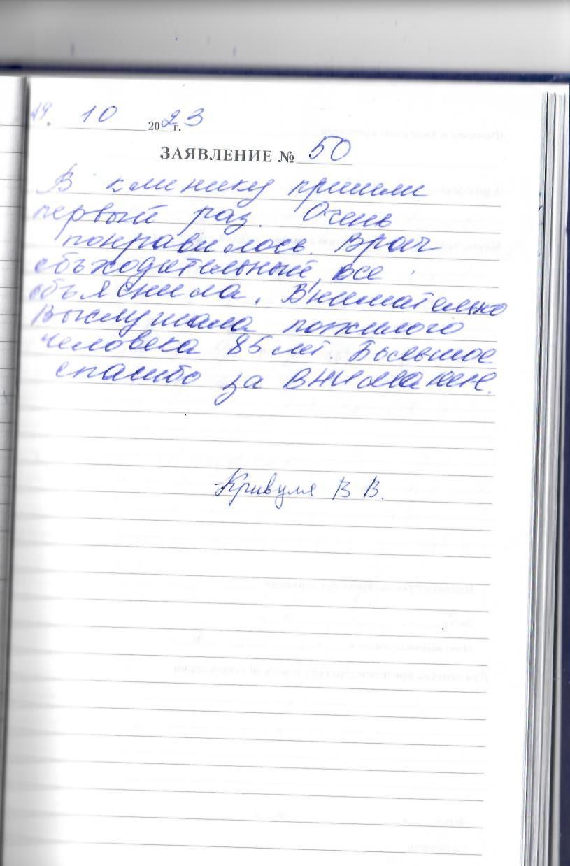В клинику пришли в первый раз . Очень понравилось. Врач обходительный, все объяснила. Внимательно выслушала пожилого человека 85-ти лет. Большое спасибо за внимание.
