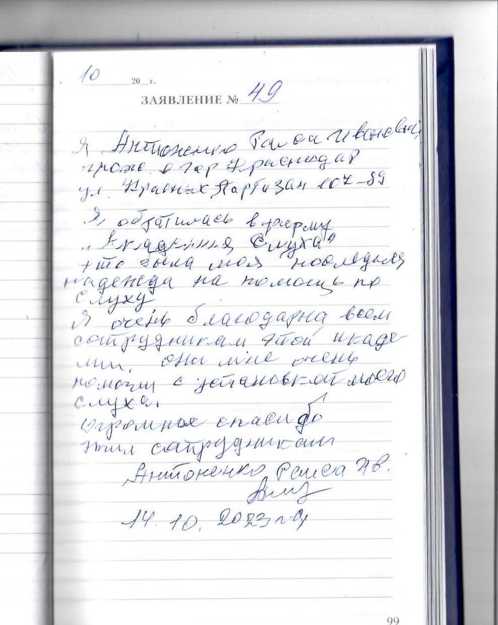 Я, Антоненко Раиса Ивановна, проживающая в гор.Краснодар, ул.Красных Партизан,107,кв.89.