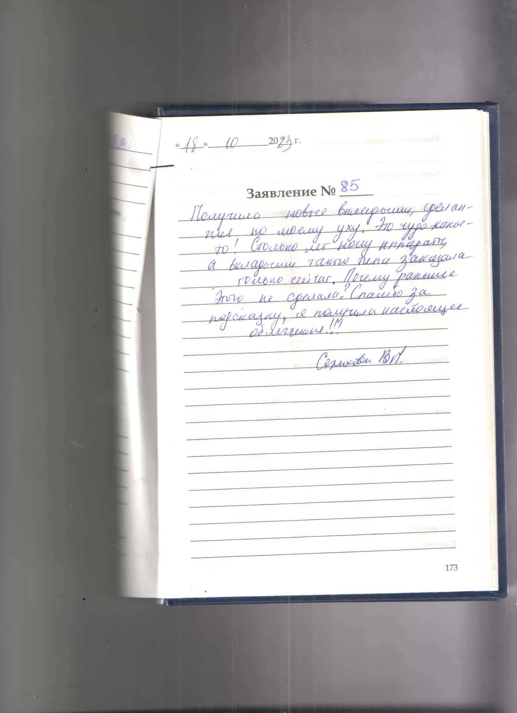Спасибо за грамотные консультации и аппарат. Могу петь в хоре ветеранов и ничего не свистит, разбираю все ноты. Тупикова Т.В.