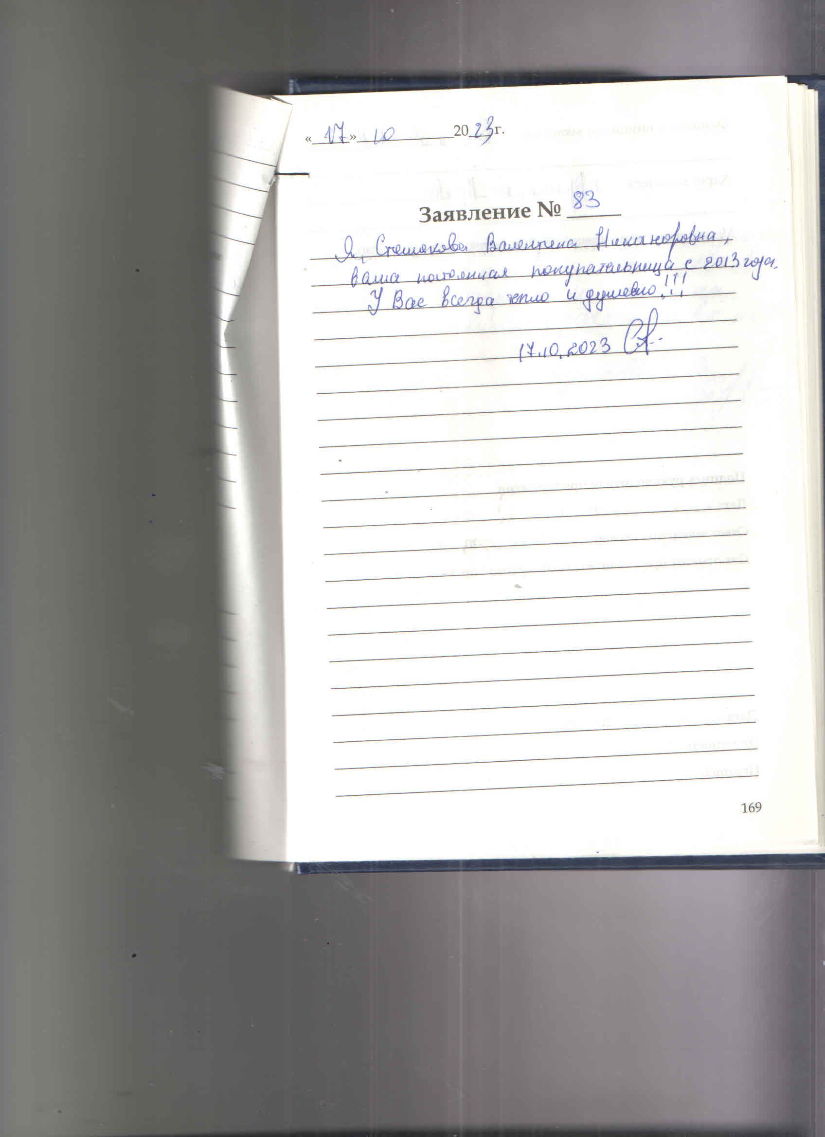 Я, Стешакова Валентина Никаноровна, Ваша постоянная покупательница с 2013 года. У Вас всегда тепло и душевно! 17.10.2023