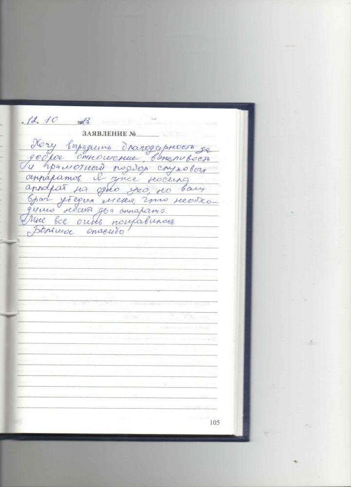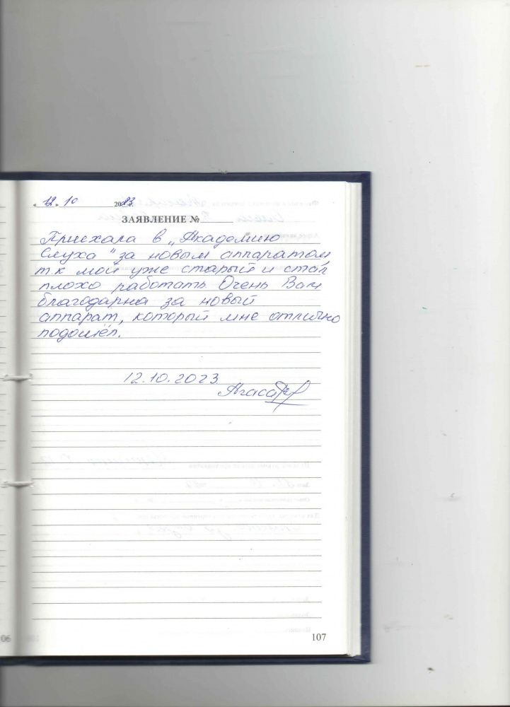 Приехала в "Академию слуха" за новым аппаратом, т.к. мой уже старый и стал плохо работать. Очень Вам благодарна за новый аппарат, который мне отлично подошел.